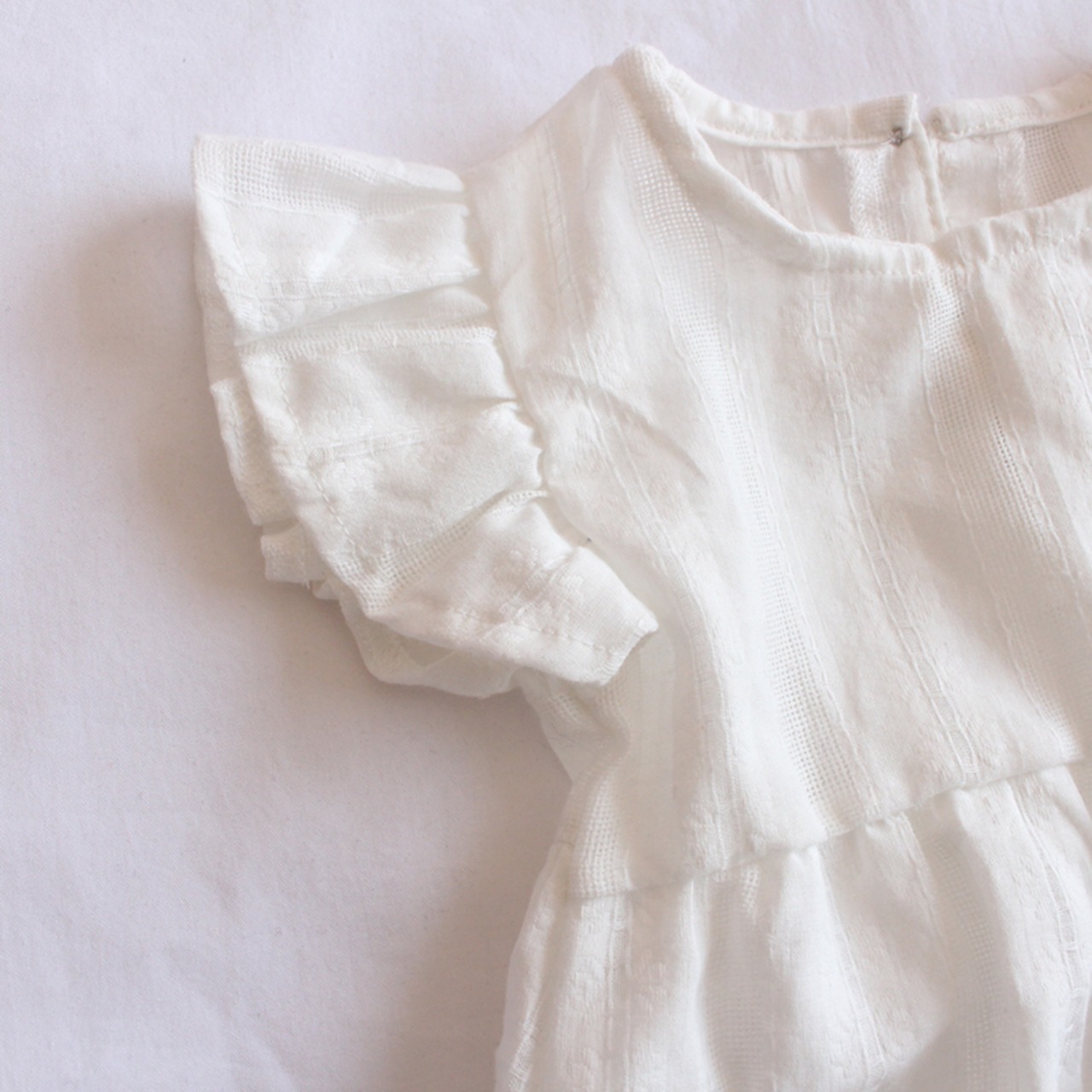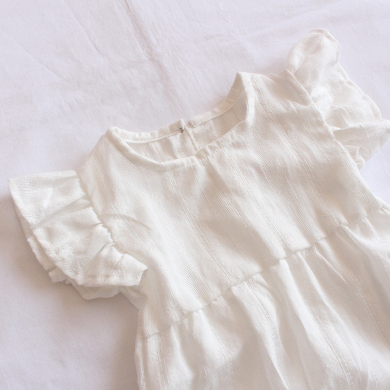 フリルの袖とレース模様がとっても女の子らしい一枚。