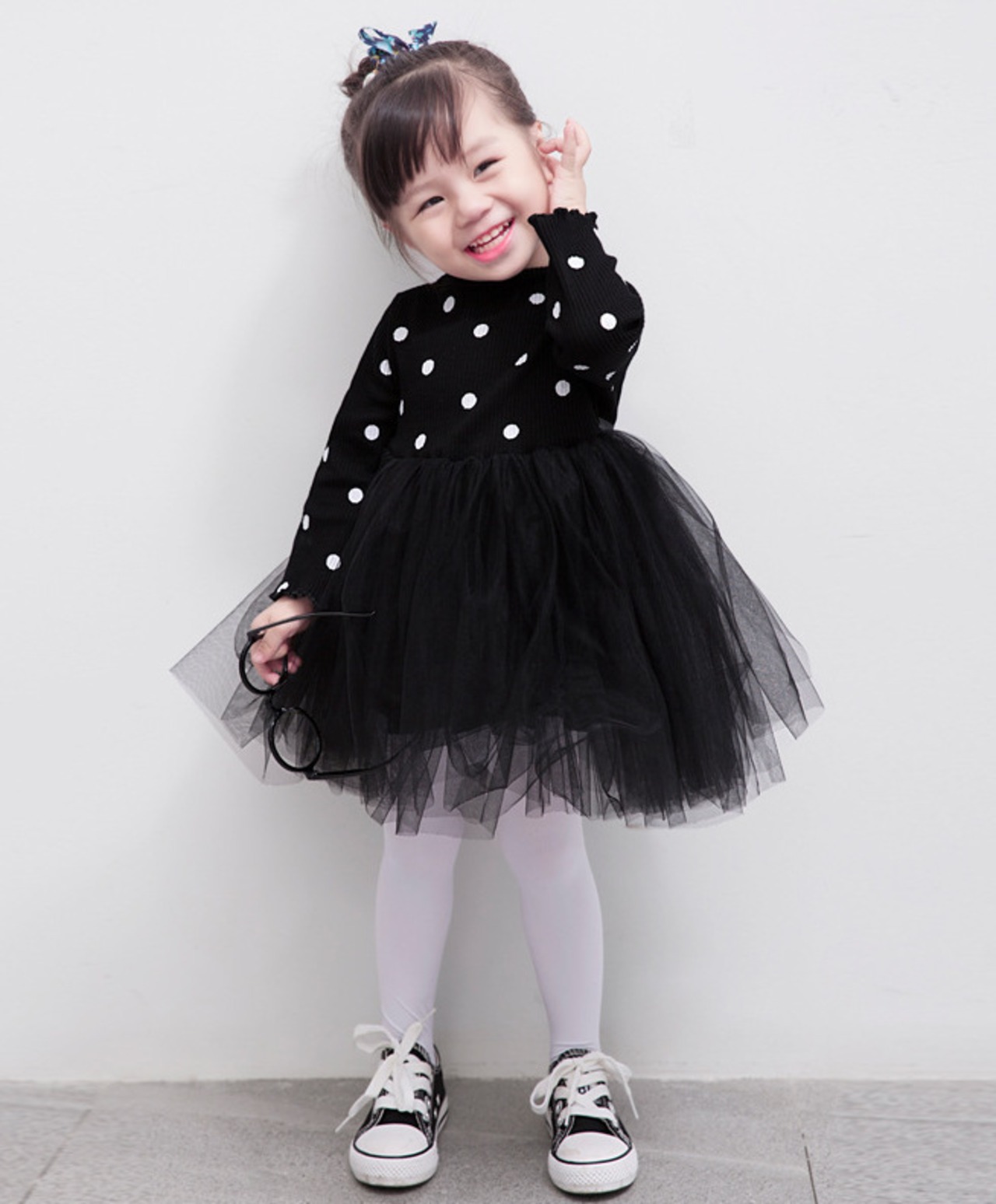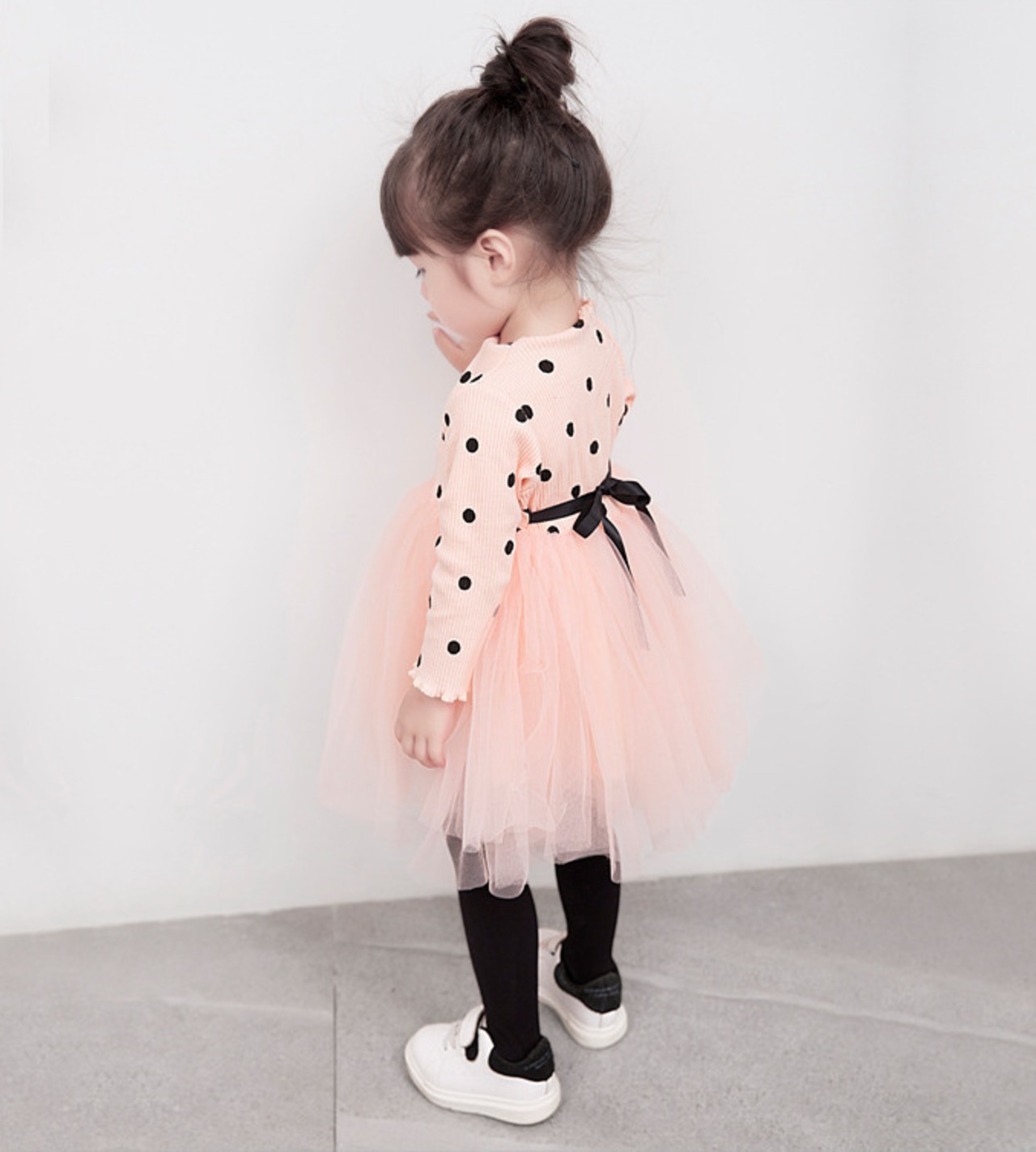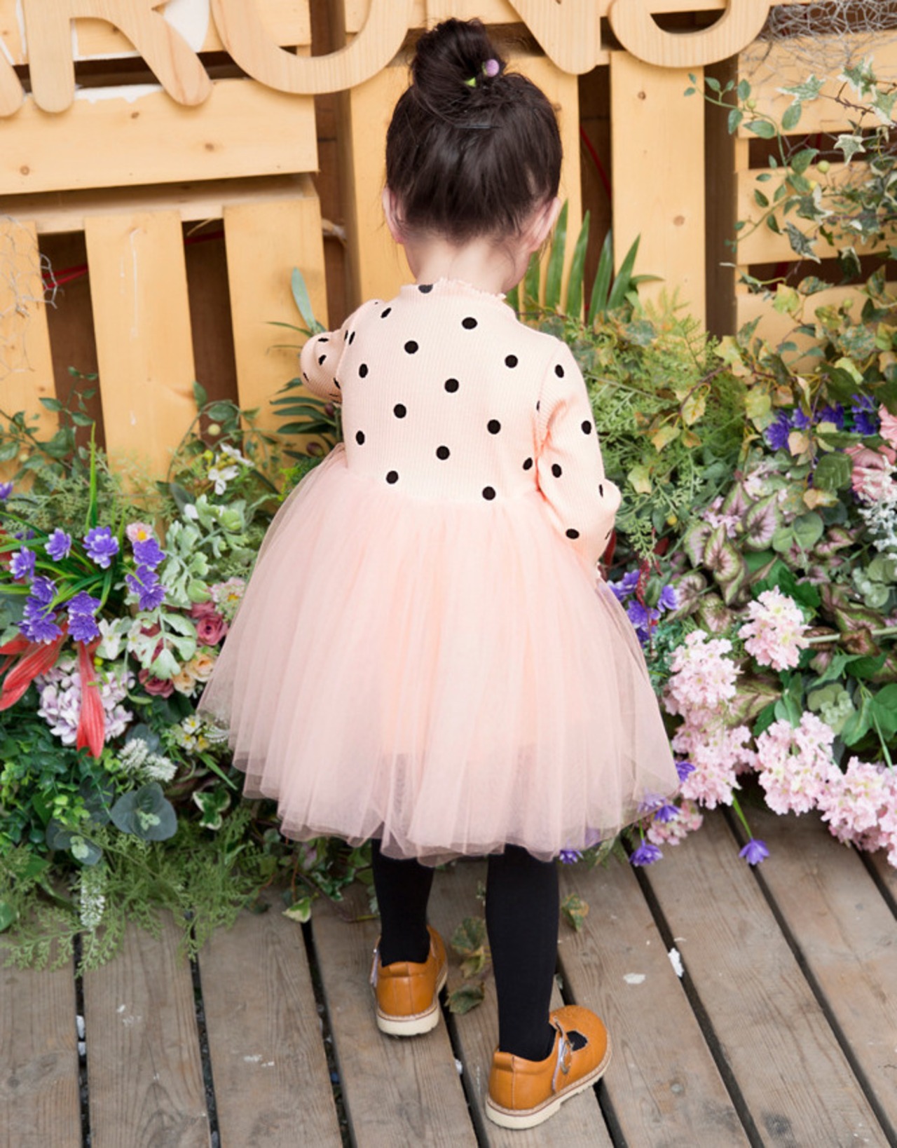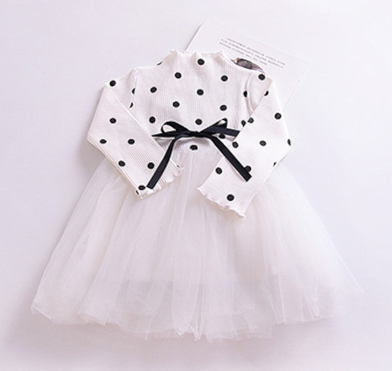 ドットのトップスとチュールスカートを組み合わせた切り替えワンピースです。