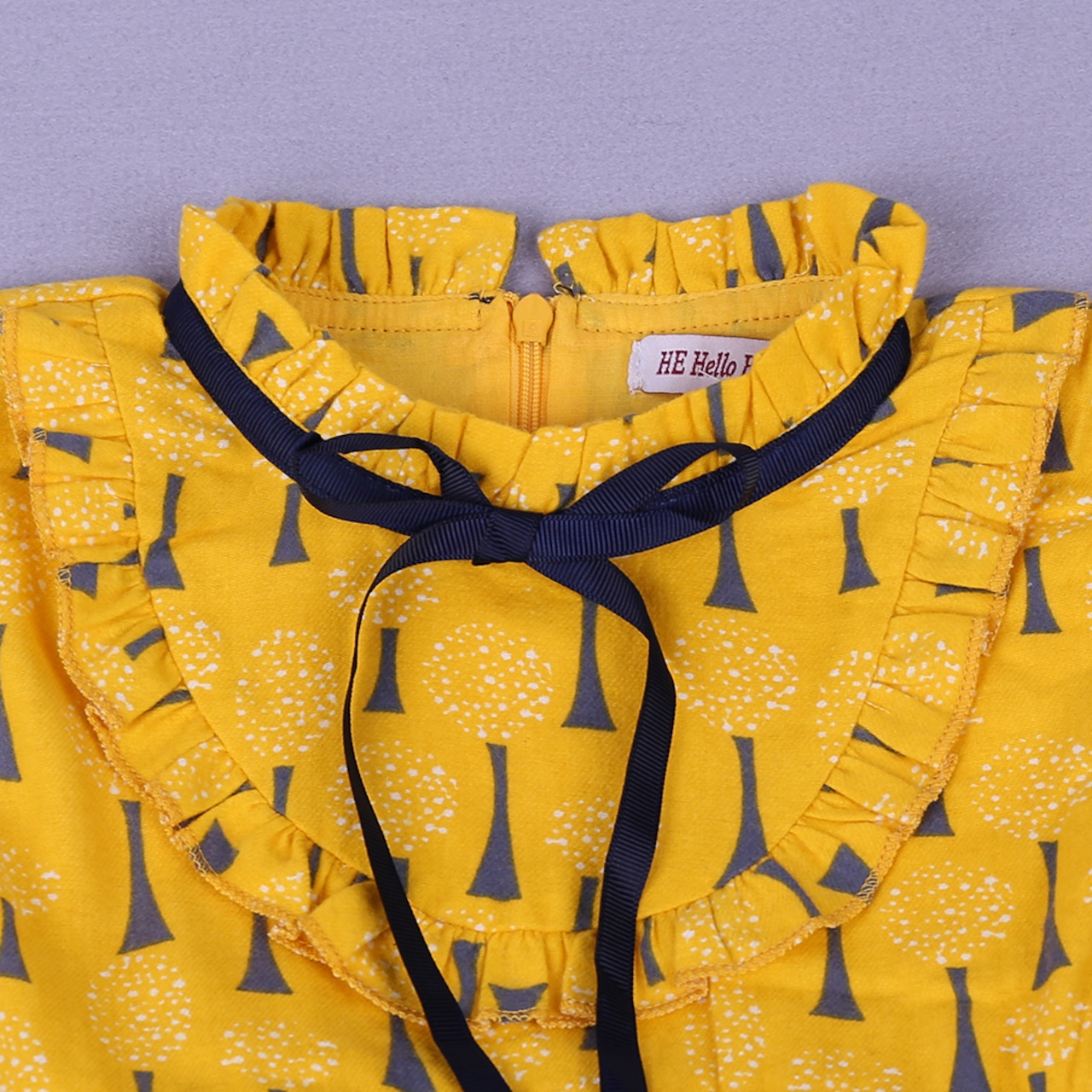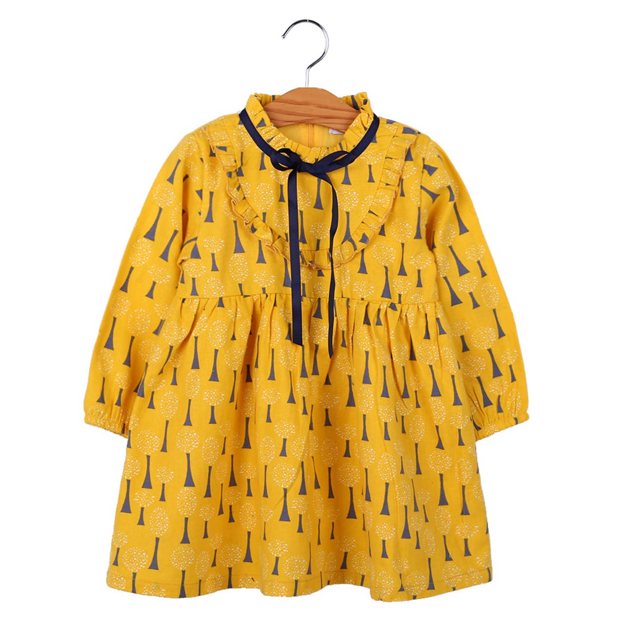 ワンピース 柄 女の子 リボン ボウタイ スタンドカラー お出かけ おしゃれ