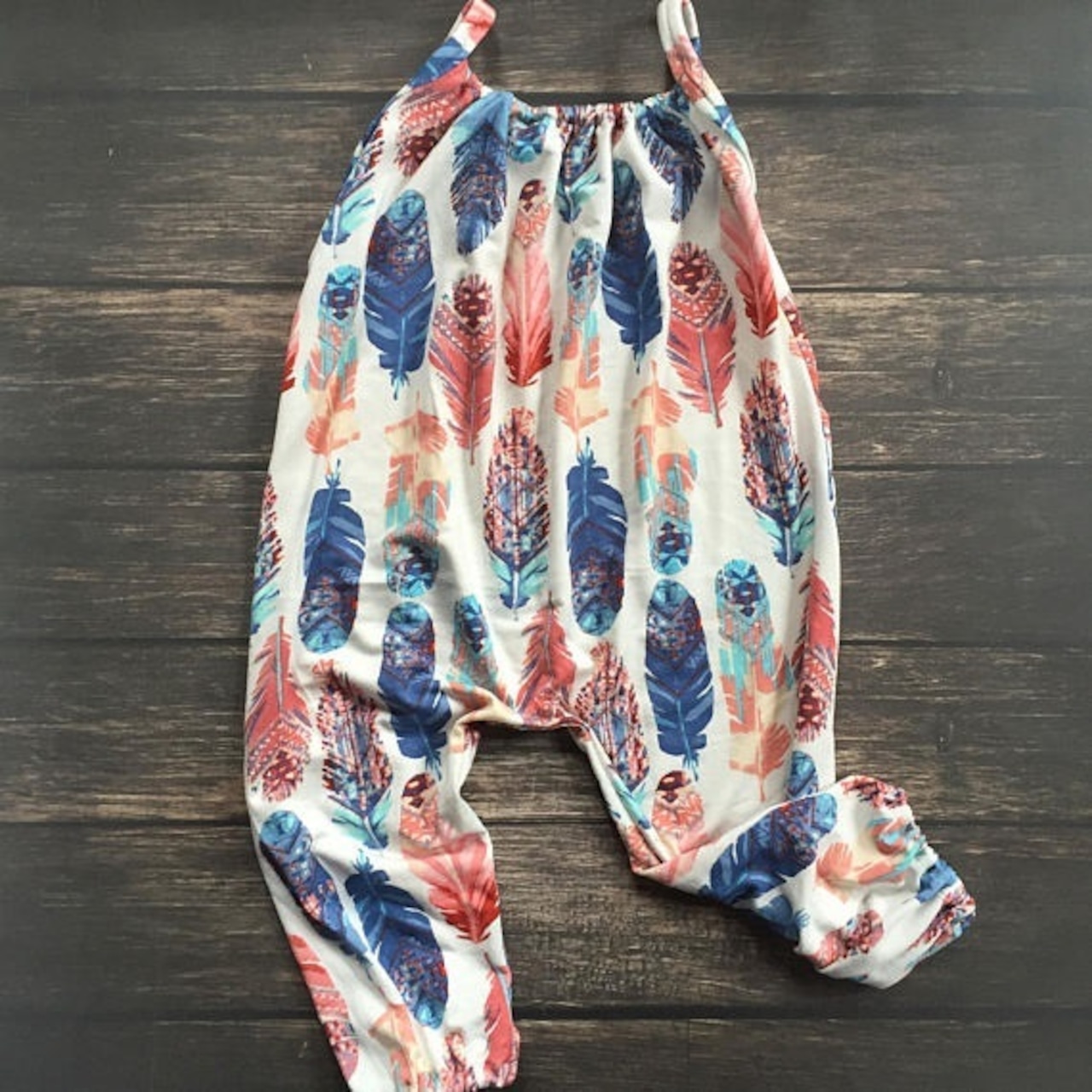 ロンパース カバーオール 幼児 新生児 赤ちゃん 女の子 羽柄 柄 ジャンプスーツ サンスーツ