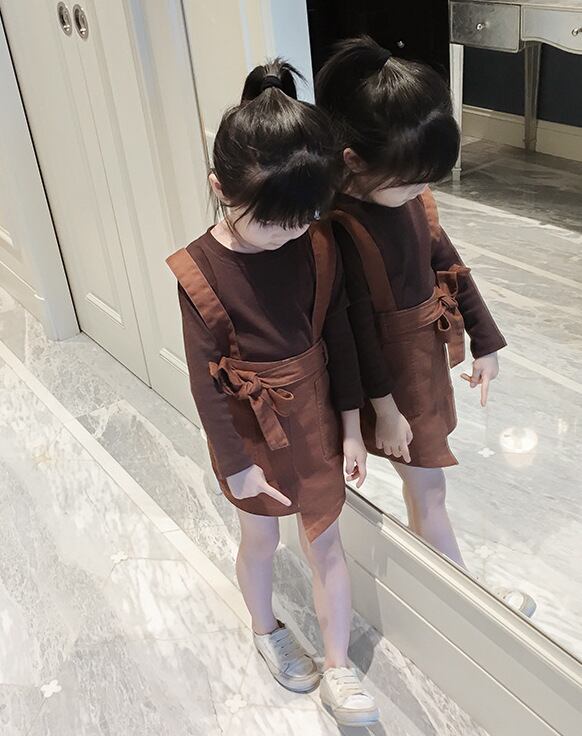 セットアップ ツーピース ワンピース スカート サスペンダースカート トップス カットソー 長袖 ロンT セット 上下セット ウエストリボン 女の子 子供 キッズ 韓国 秋冬 秋 冬