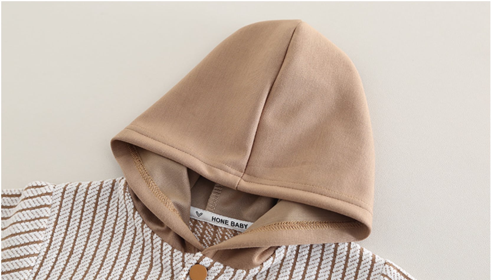 目を惹く異素材コンビネーション カーディガン本体は温かみのあるストライプ素材。フードとパンツは柔らかなスウェット調の生地で切り替えており、シンプルながらも立体感のあるおしゃれを楽しめます。