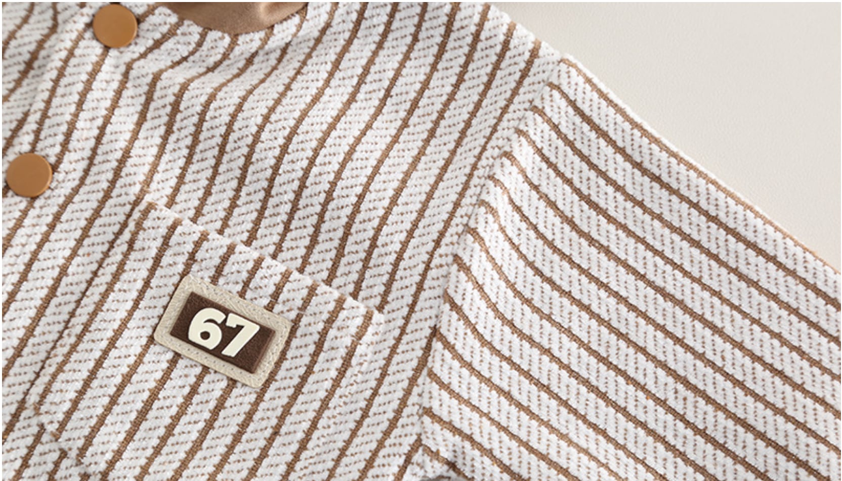 表情豊かなツイード調のストライプ生地を使用したカーディガンと、履き心地抜群のジョガーパンツがセットになって登場しました。 ヴィンテージ感のあるボタンや胸元のパッチなど、細部までこだわりが詰まったデザイン。これ一組でお出かけスタイルが完成する、忙しい朝の強い味方です。