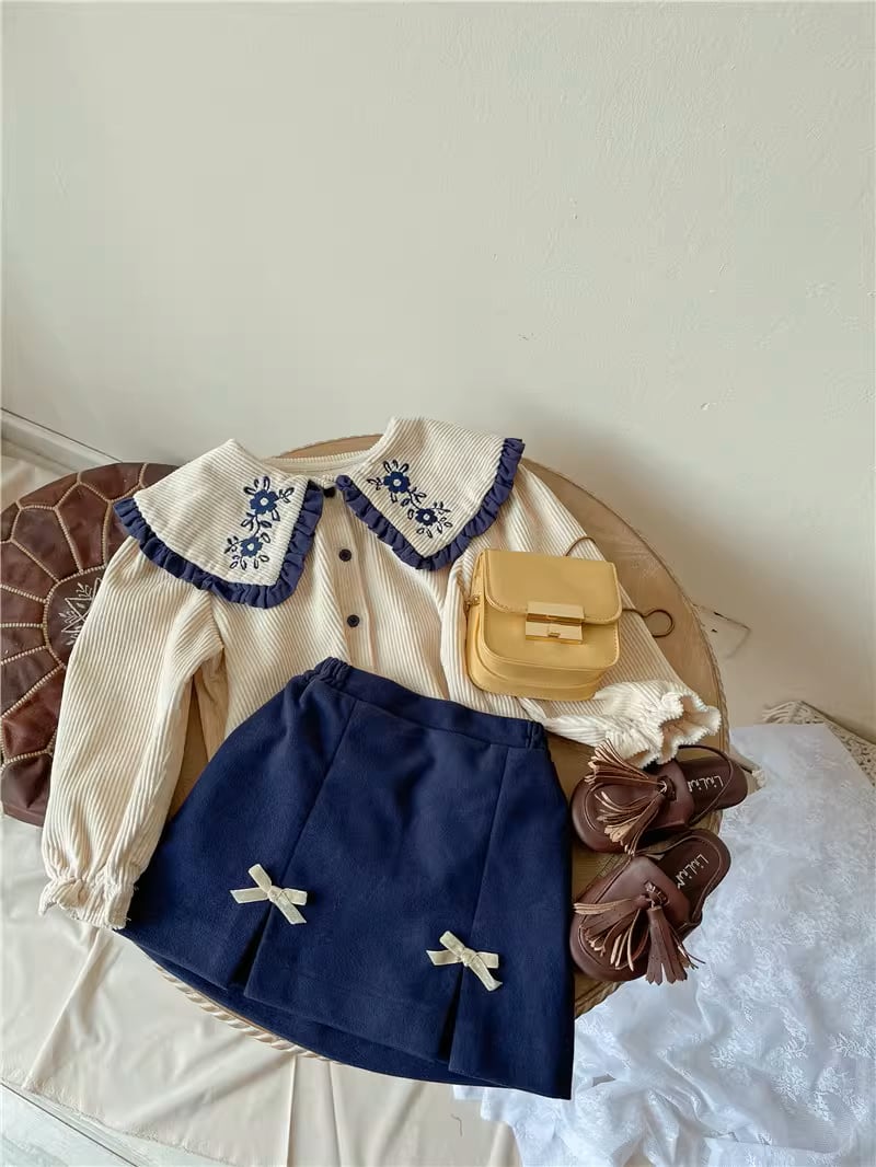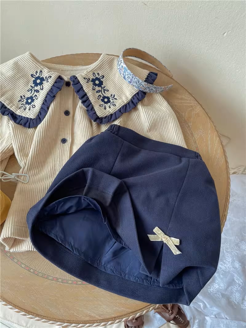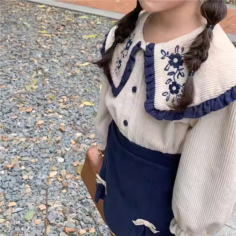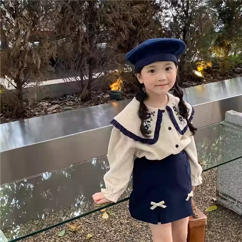 縁取りや刺繍など、細部までこだわったディテールが「いかにも子供服」にならない、