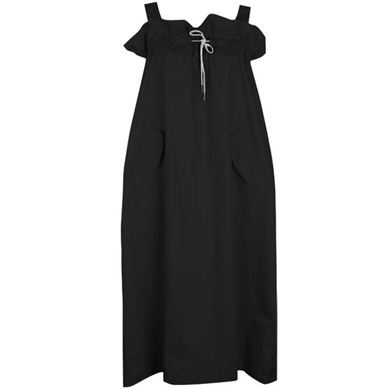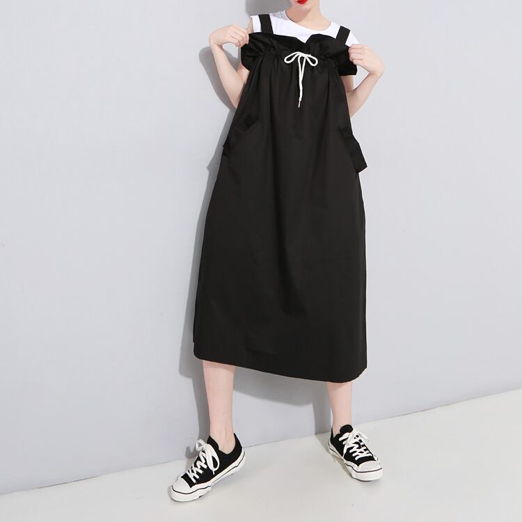 【ママ服】 ノースリーブワンピ 2way ミモレ丈 ロングスカート フリル リボン マタニティーワンピ 大きいサイズ ゆったり ワンピース ロング丈 マキシ丈 モード ブルー 黒 オーバーサイズ 春夏 秋