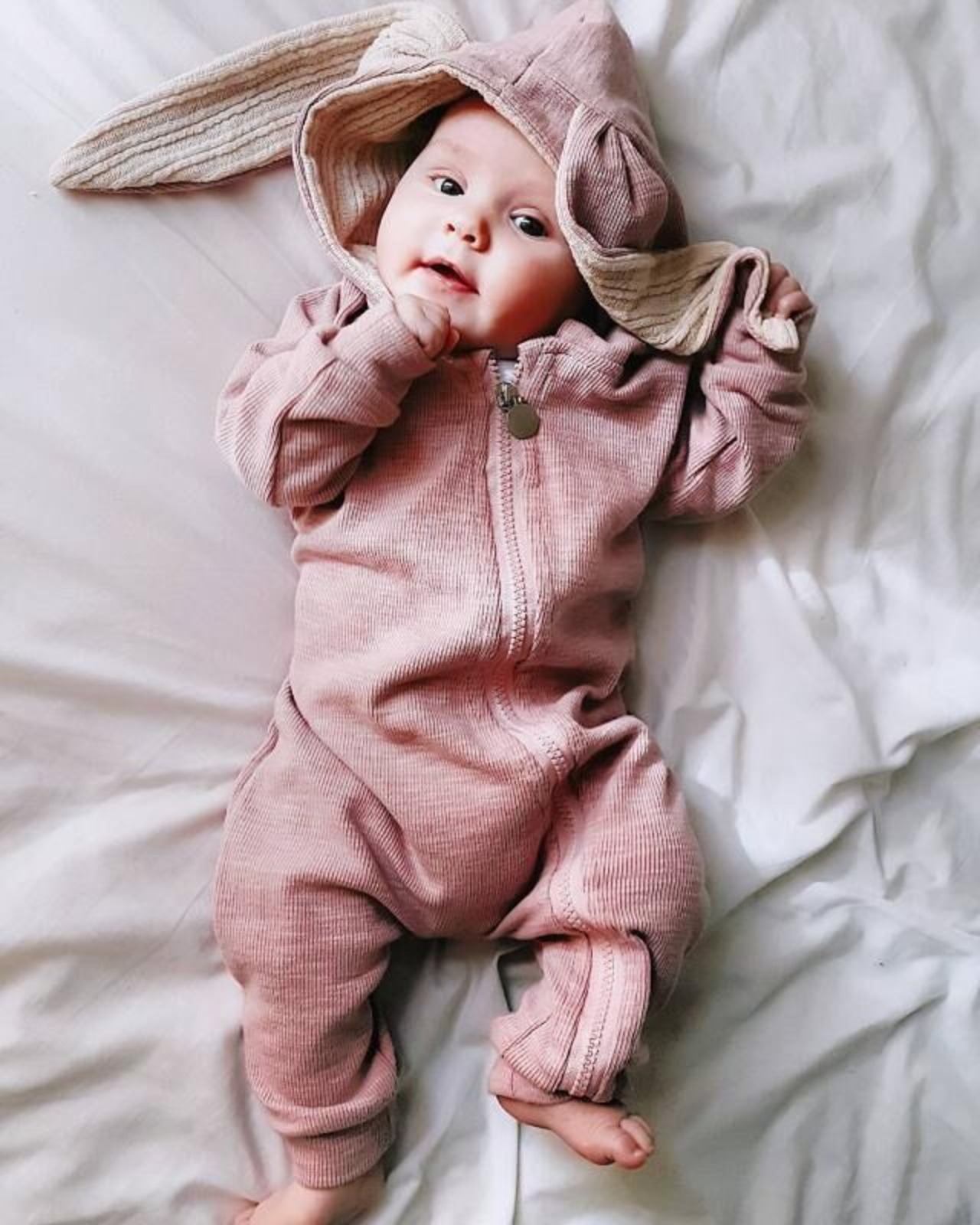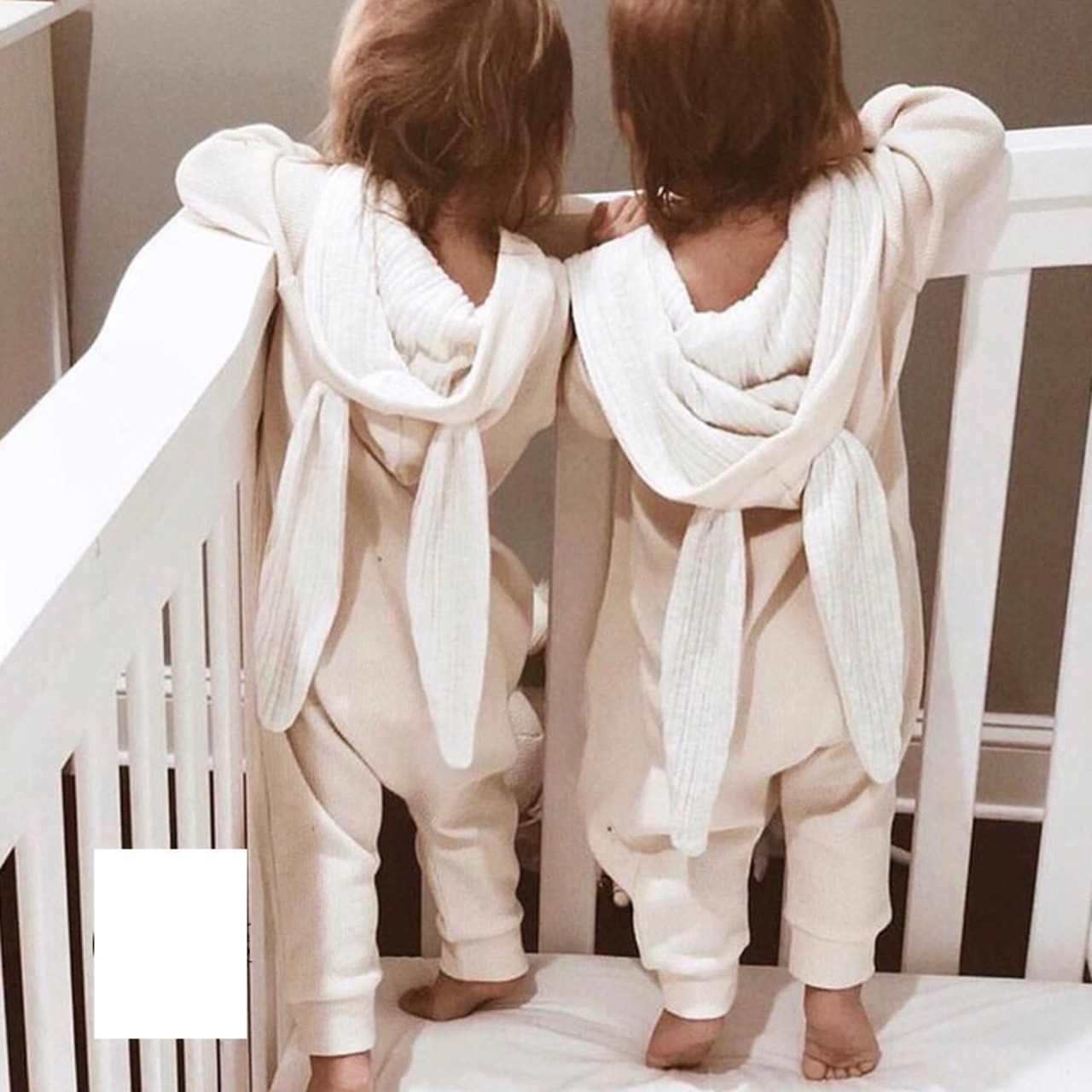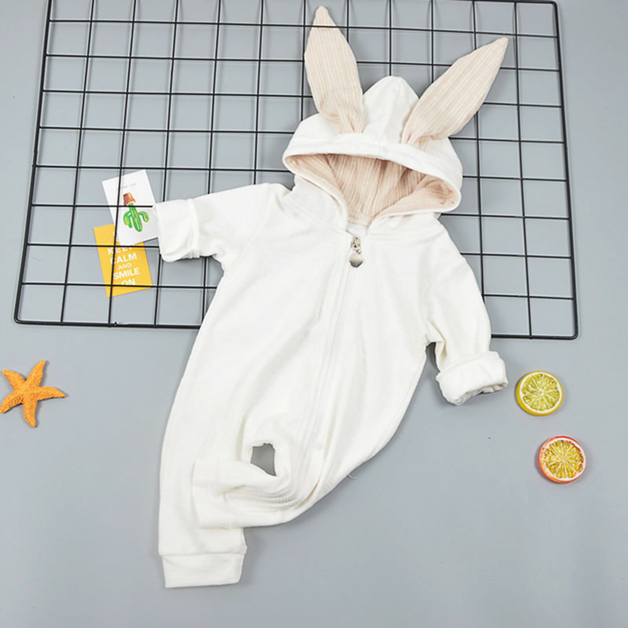 ベビー カバーオール うさぎの耳付き ロンパース 長袖 足付き フード付き 赤ちゃん 秋冬 無地