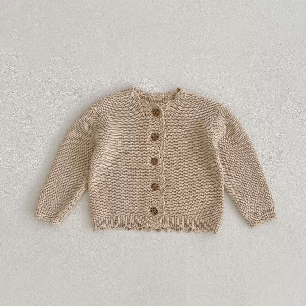 ナチュラルで優しい雰囲気が漂う、 スカラップデザインのニットカーディガンです。
