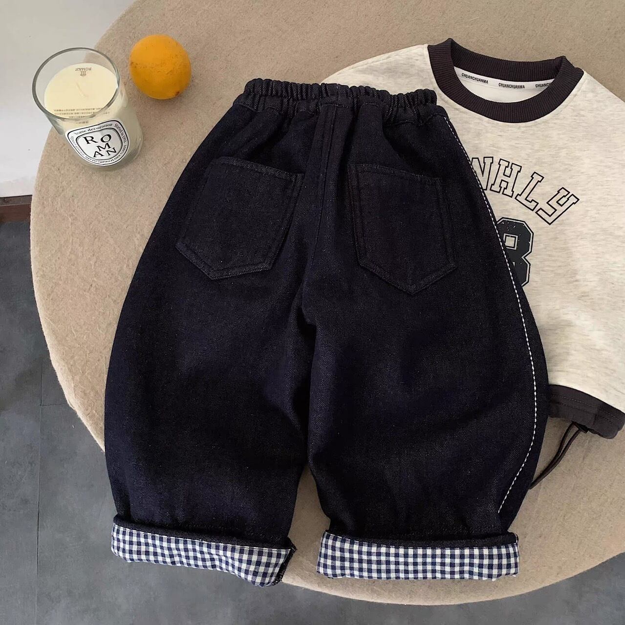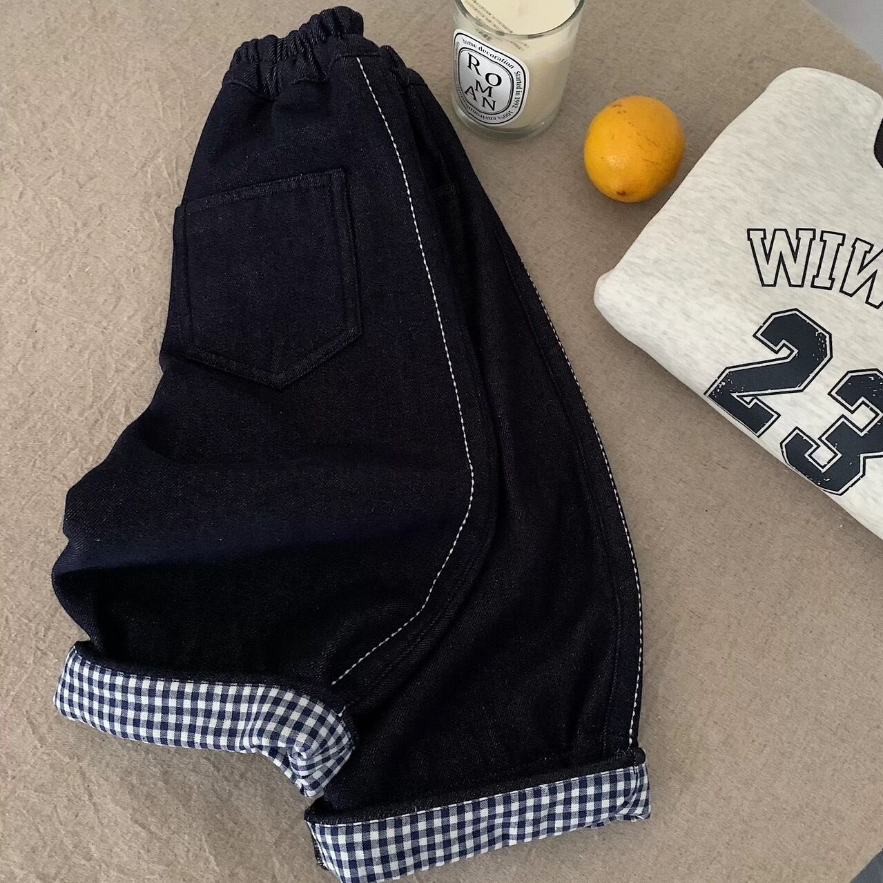 裾をロールアップすると現れるチェック柄が、遊び心たっぷりのデニムパンツ。