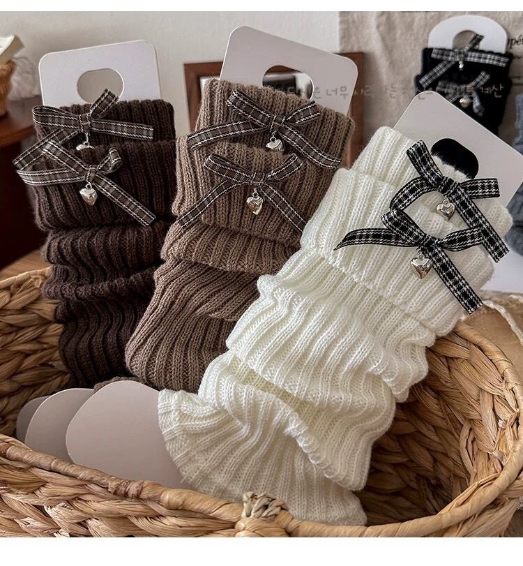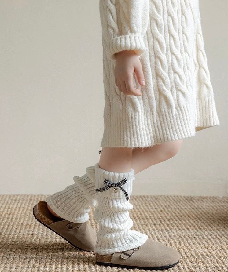 年中使える♪ チェックリボン&ハートチャーム付 レッグウォーマー(35cm丈/全6色)