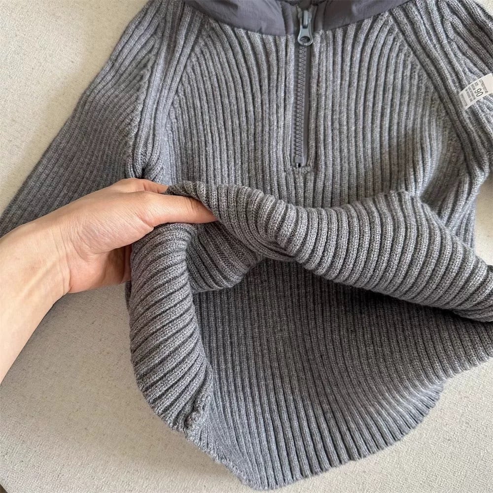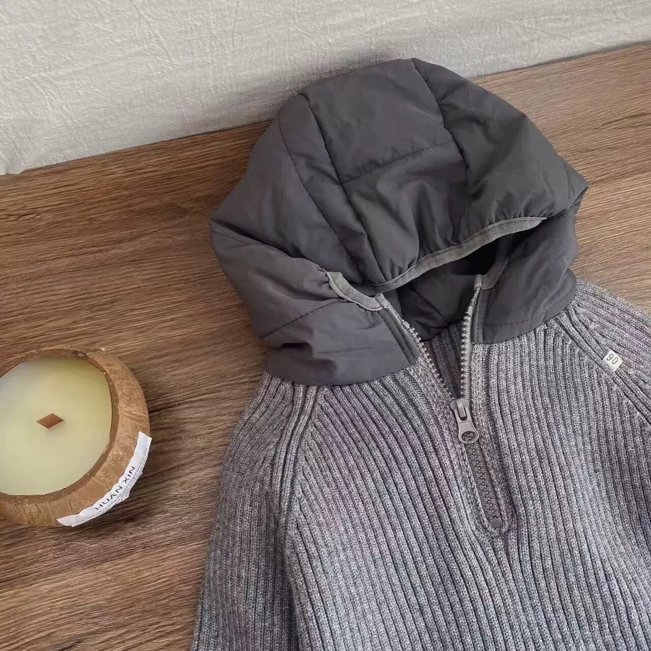 ニット素材と異素材フードを組み合わせた、デザイン性のある子供用フーディーです。