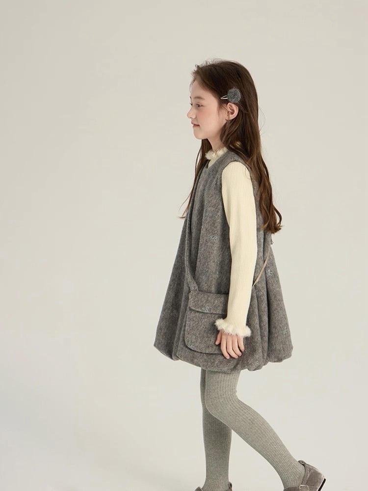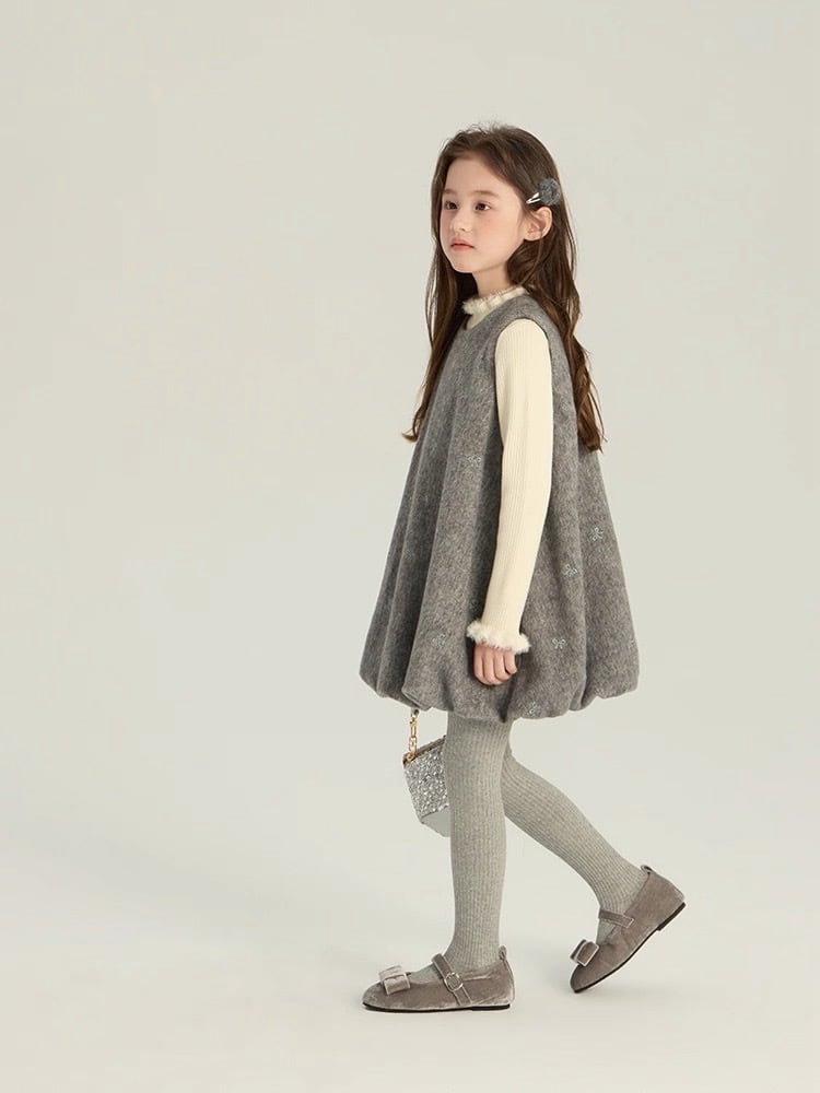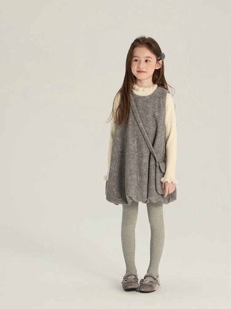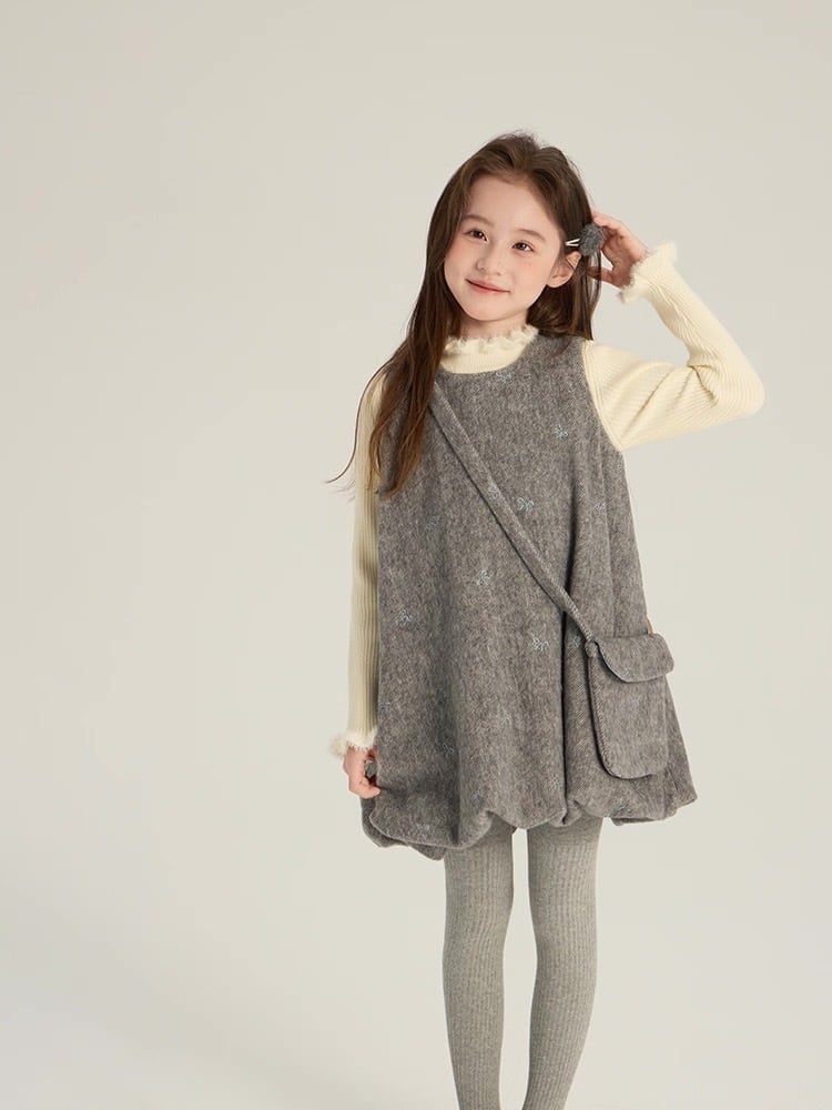 小さなリボンの刺繍が全体に散りばめられた、上品で可愛らしい女の子用のワンピース(ジャンパースカート)です。