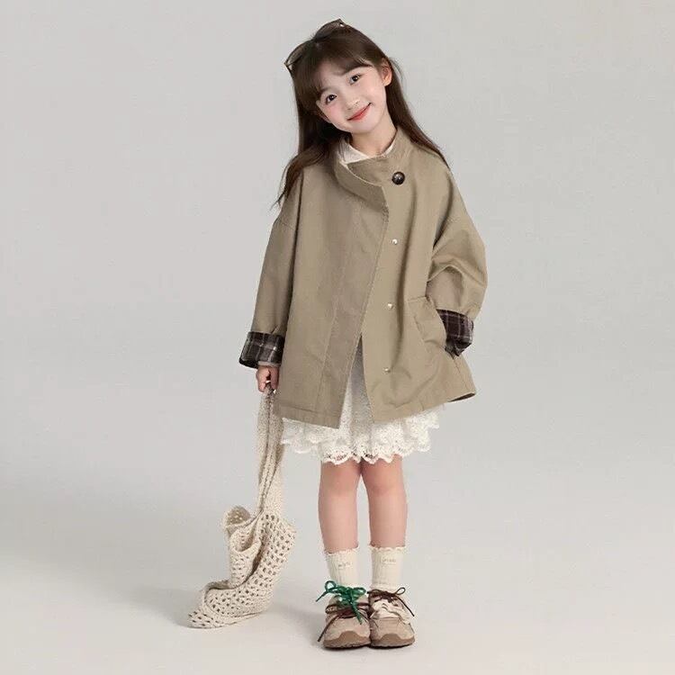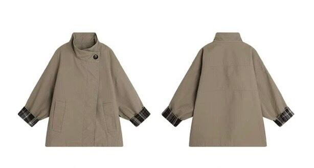 ボタンを留めるとハイネックデザインになる、春先にぴったりのコートです。