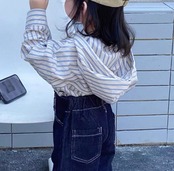 ・ストライプ柄のデザイン性が高く、デニムやシンプルなボトムスと合わせるだけで簡単におしゃれなコーディネートが完成します。