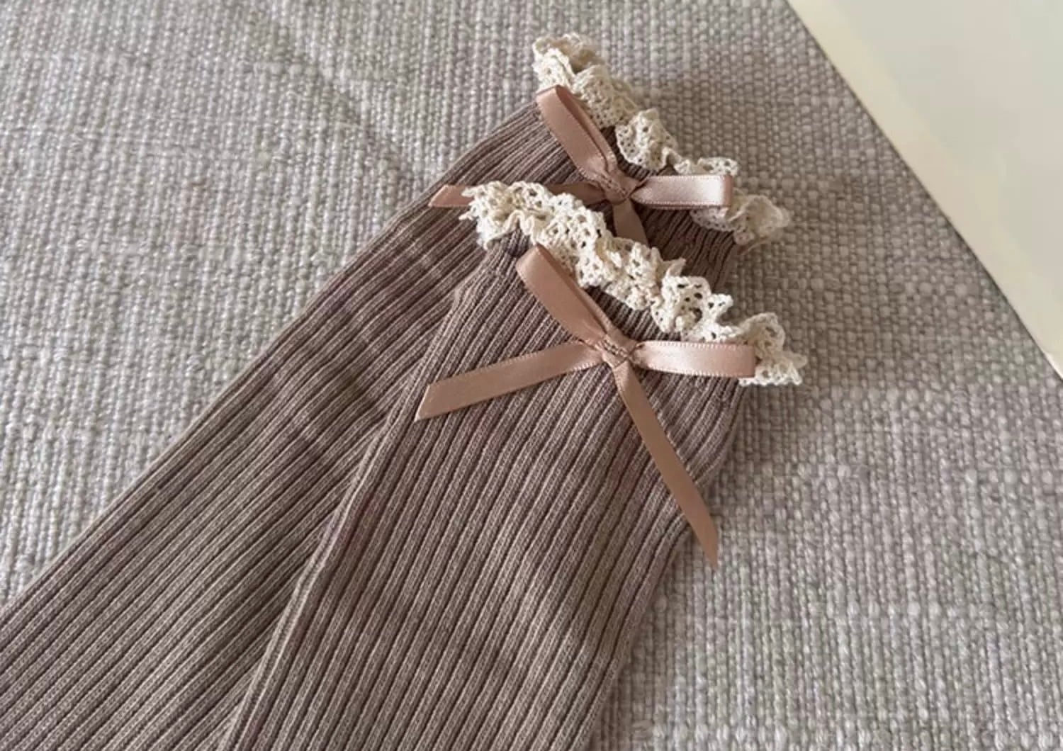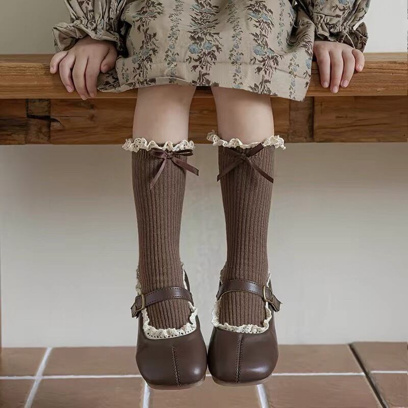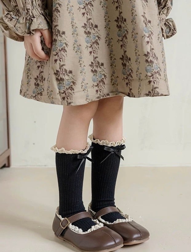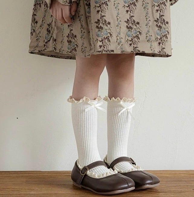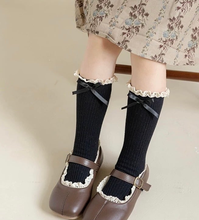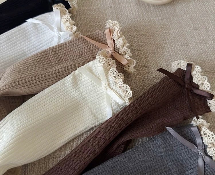レース&リボン付き リブハイソックス