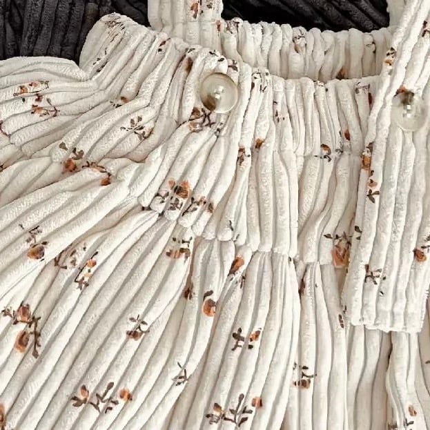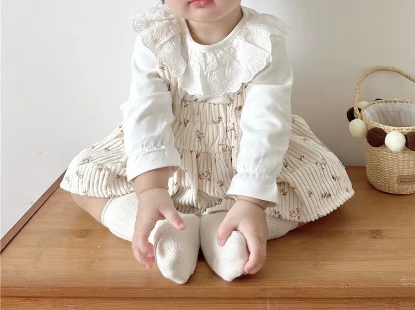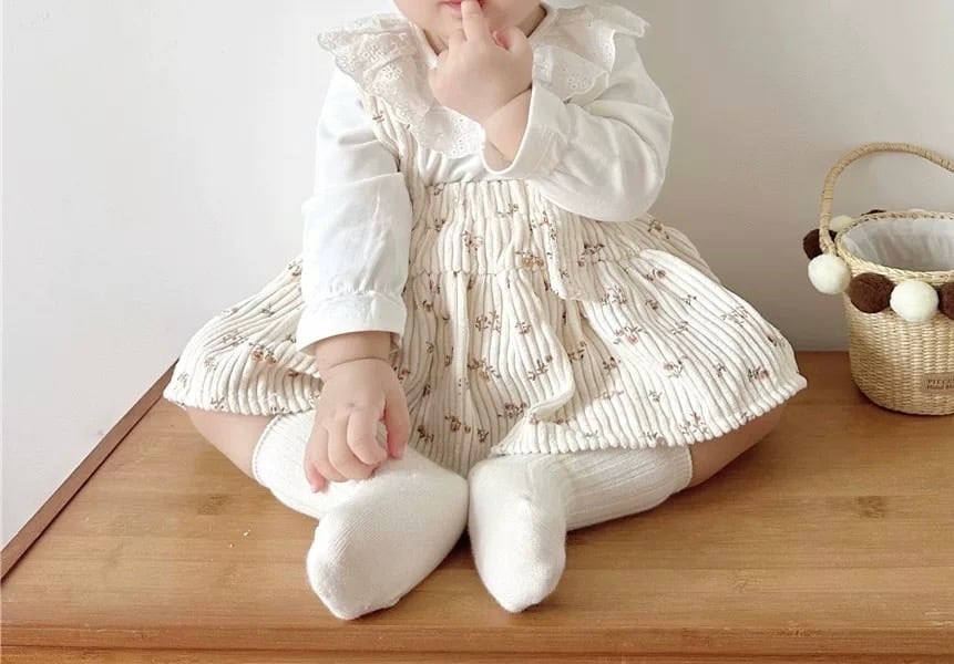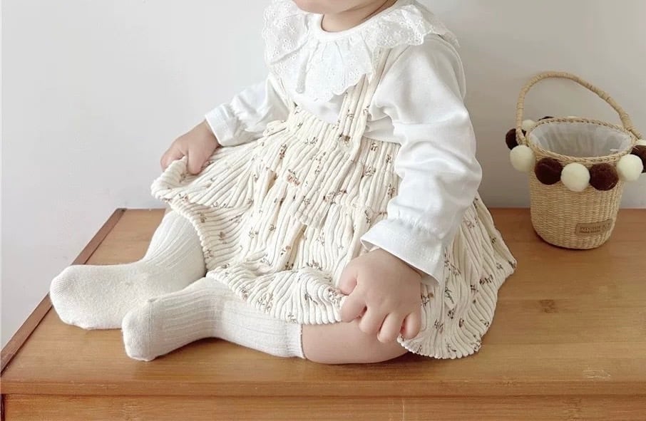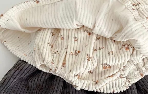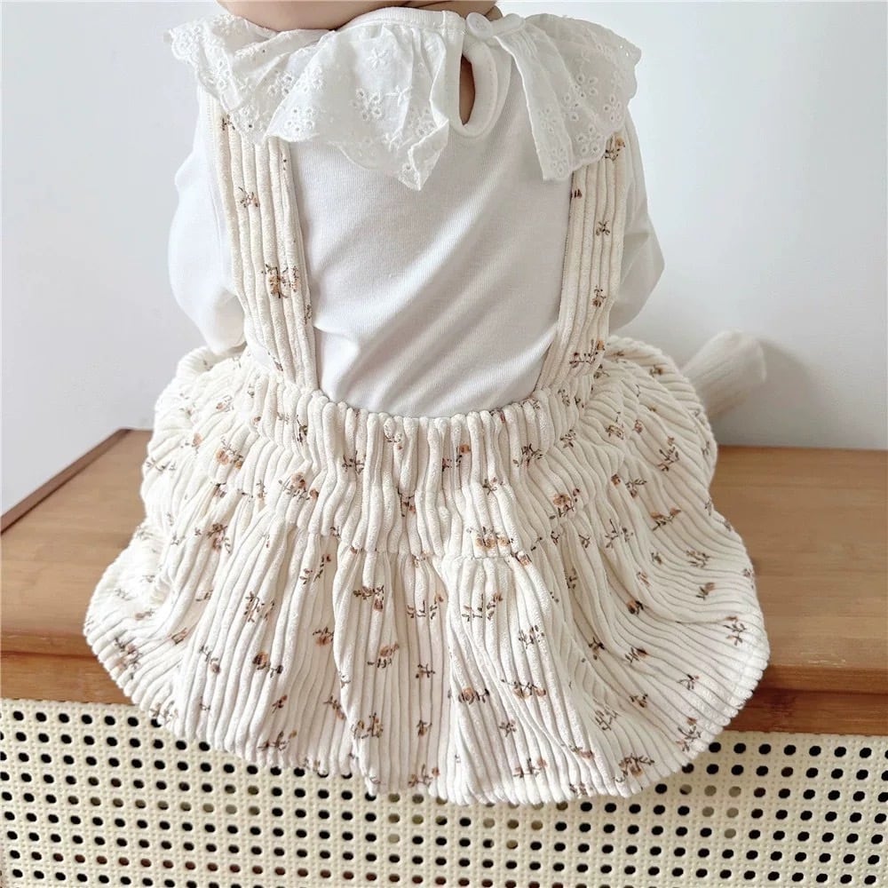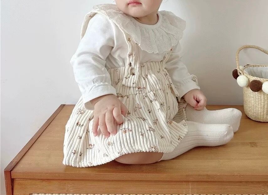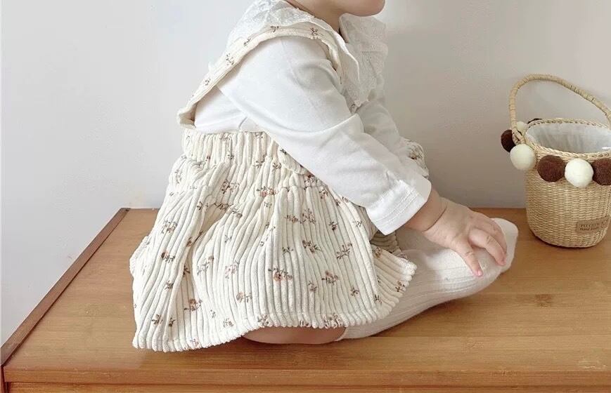 レトロ可愛い小花柄 コーデュロイサロペットスカート風ロンパース