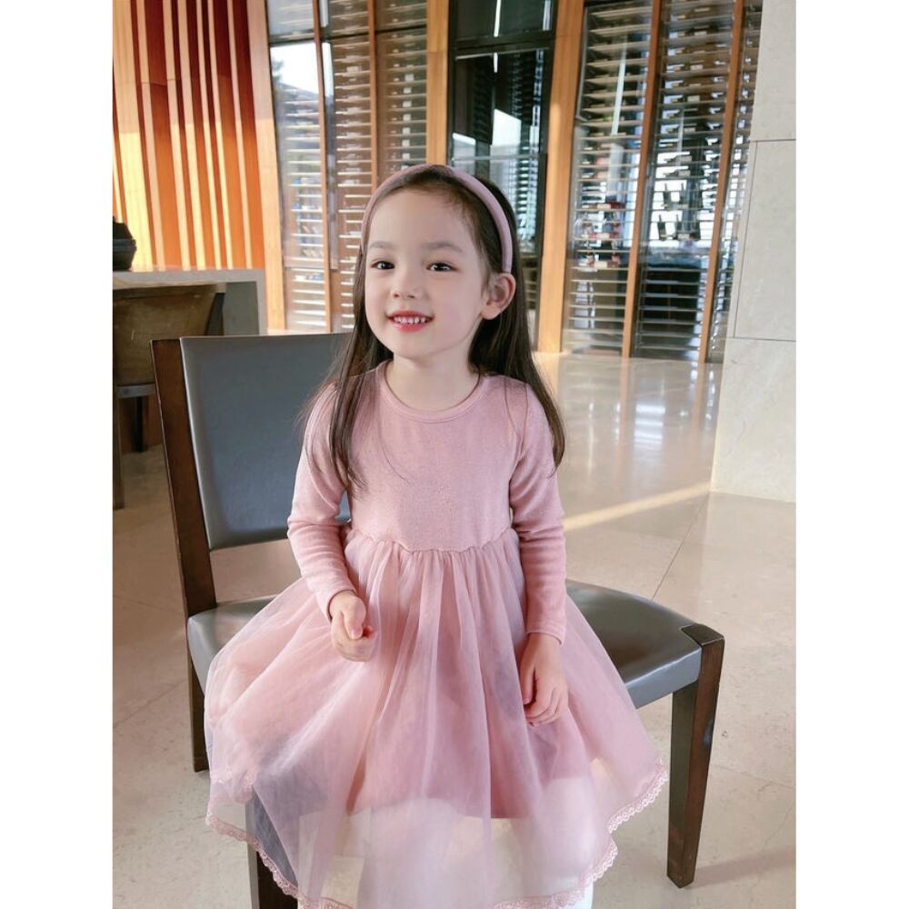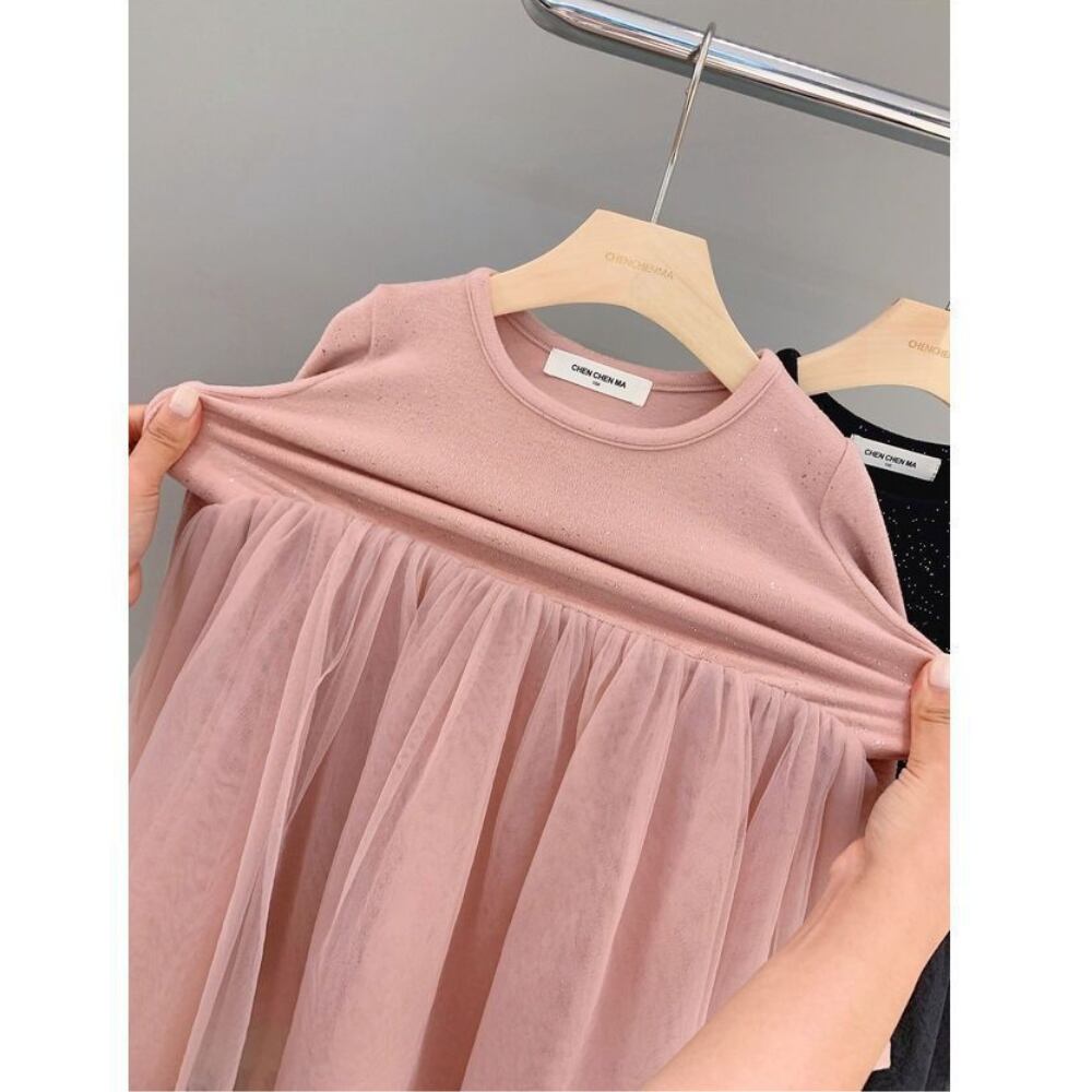 ラメストレッチ&エアリーチュールのドッキングドレス
