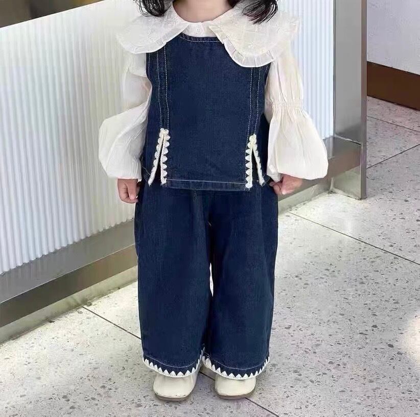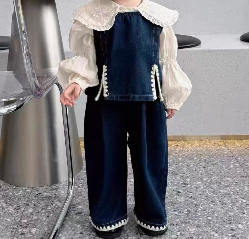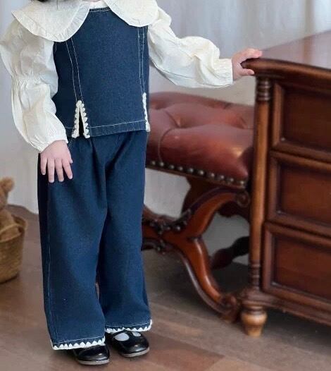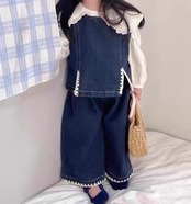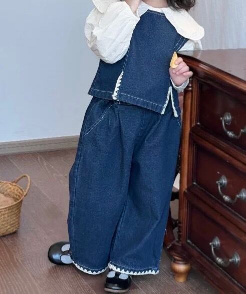 深みのあるインディゴカラーのデニム素材を使用した、ベストとパンツのセットアップです。