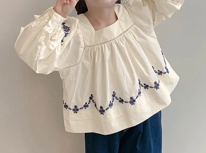 花柄刺繍スクエアネックパフスリーブブラウス