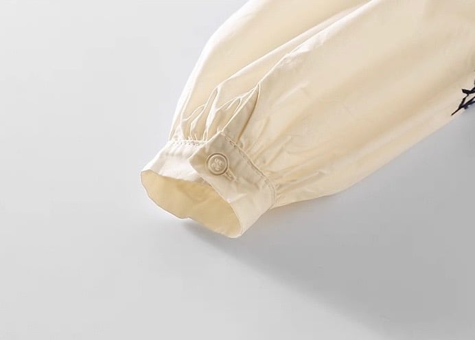 ・袖口にはボタンが付いており、きちんとした印象を与えつつ、お着替えもスムーズに行えます。