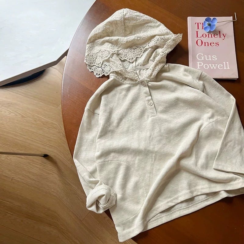 繊細なレース刺繍が大人可愛い フード付き長袖Tシャツ