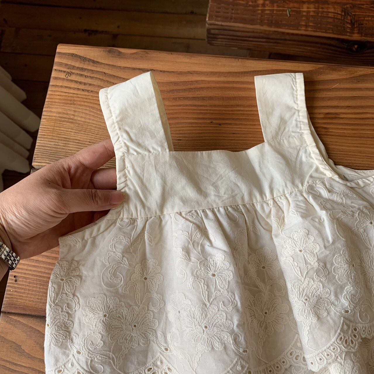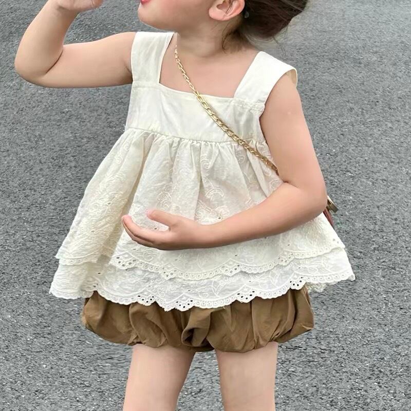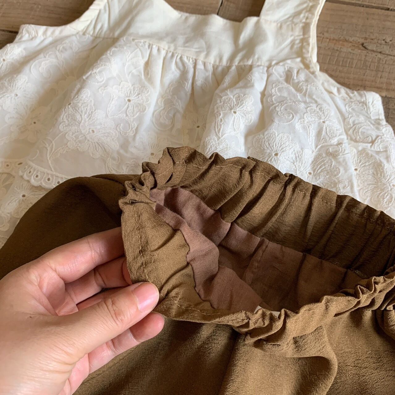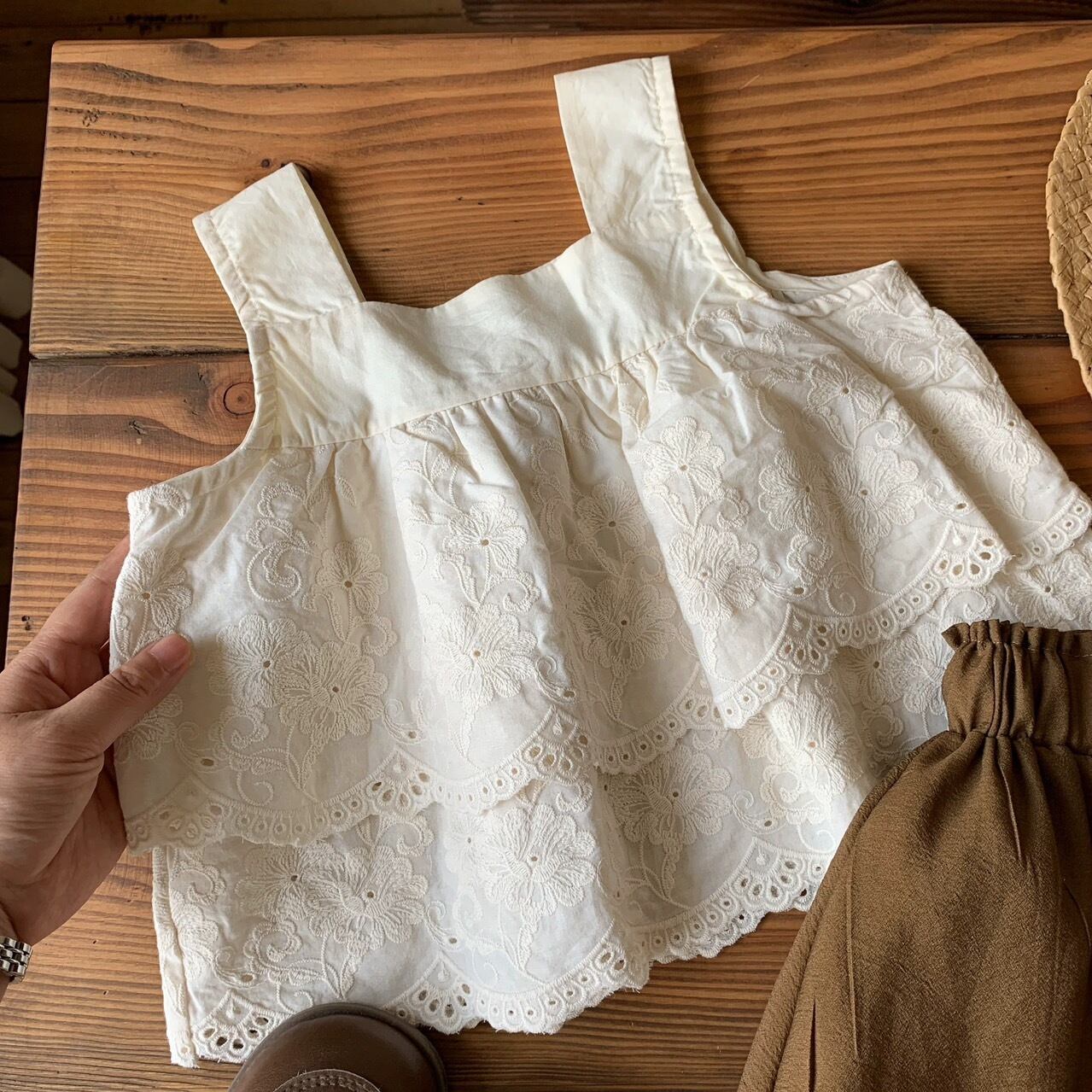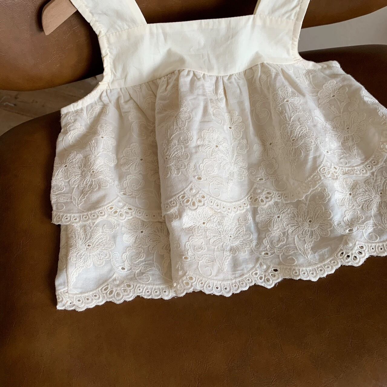 トップスは肩紐が太めで安定感があり、2段に重なったレースの裾が動くたびに華やかに揺れます。セットアップなので単品使いもできるのでお手持ちのお洋服とも合わせやすいベーシックな色味のアイデムなのも嬉しいポイントです。