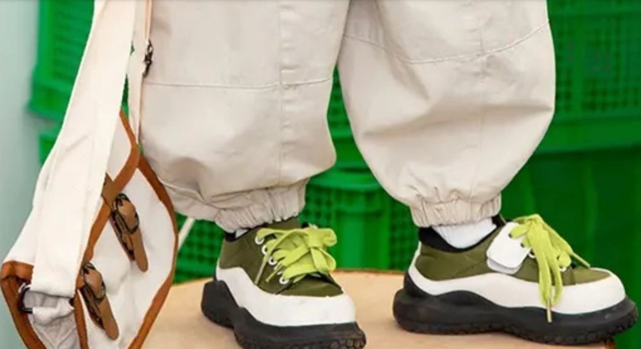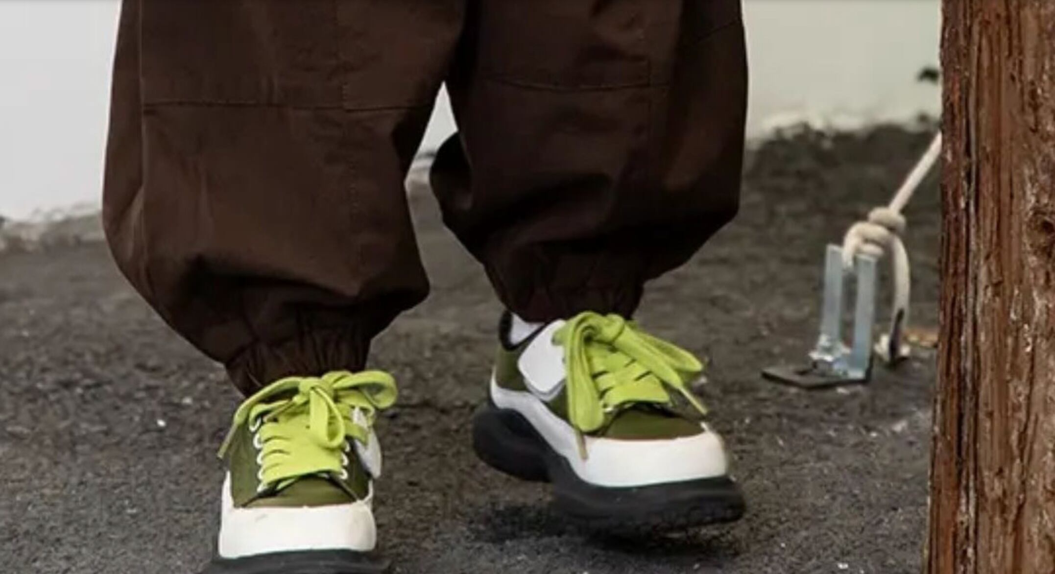 裾が絞ってあるので、サンダルからスニーカー、ブーツまで足元を選びません。