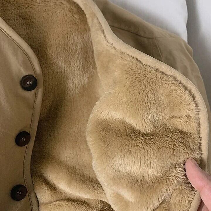 首元はVネックのノーカラーデザイン。マフラーやタートルネックと合わせても、もたつきません。袖口はリブ仕様で冷たい風の侵入をシャットアウトします。