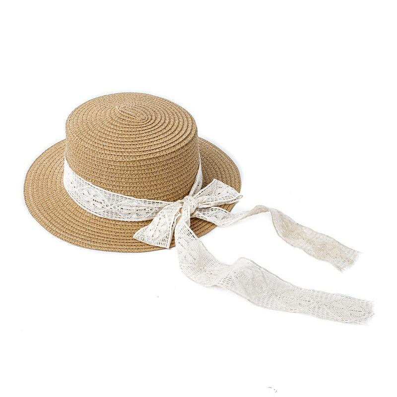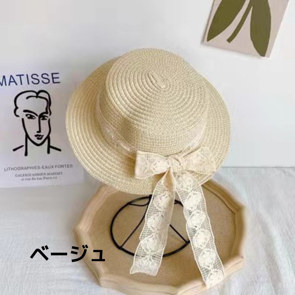 【おめかし麦わら帽子】大きなレースリボンのストローハット|UV対策・カンカン帽・お出かけ・海・リゾート・子供用