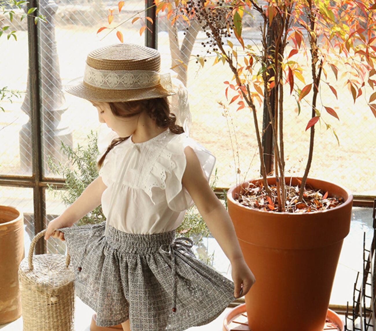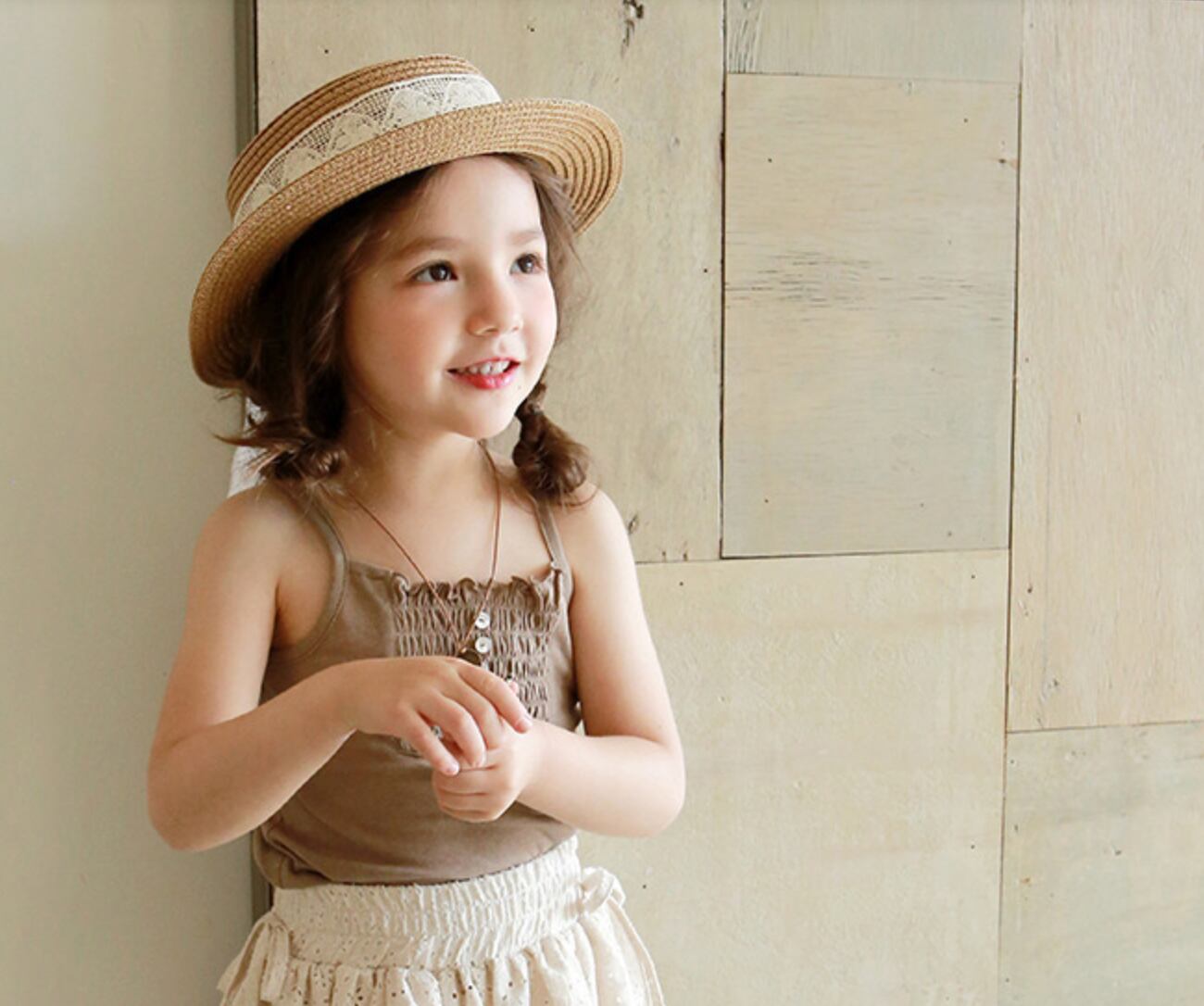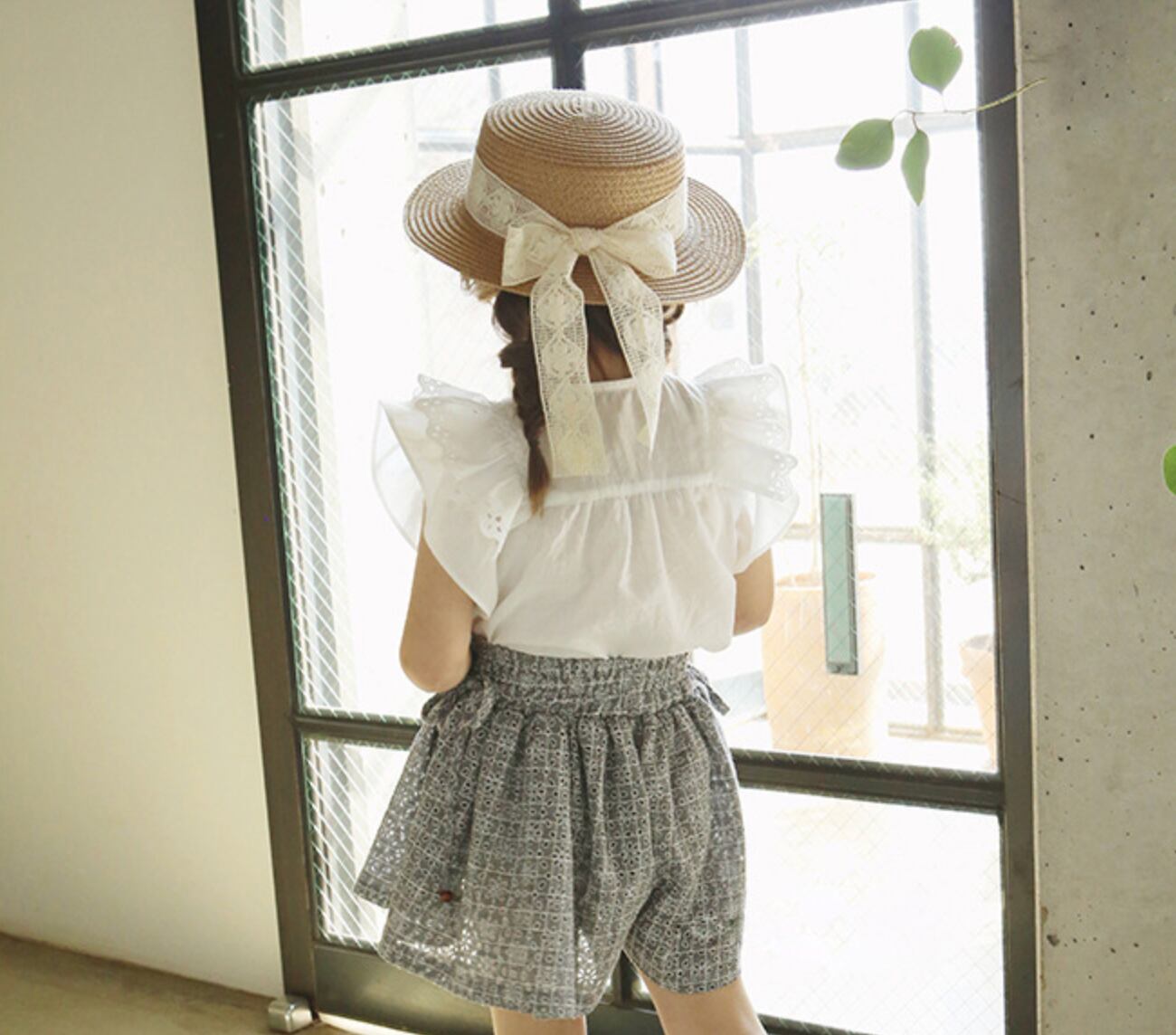 夏のUV対策に:広めのつばが、お子様の顔周りを強い日差しから優しく守ります。