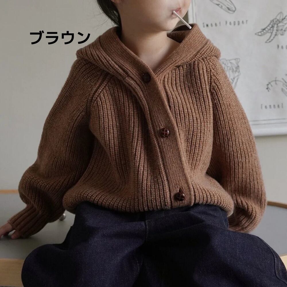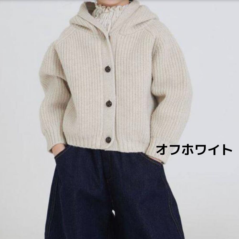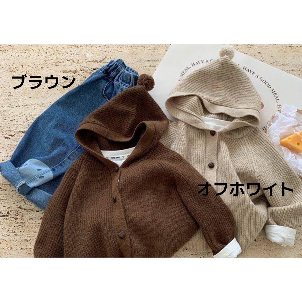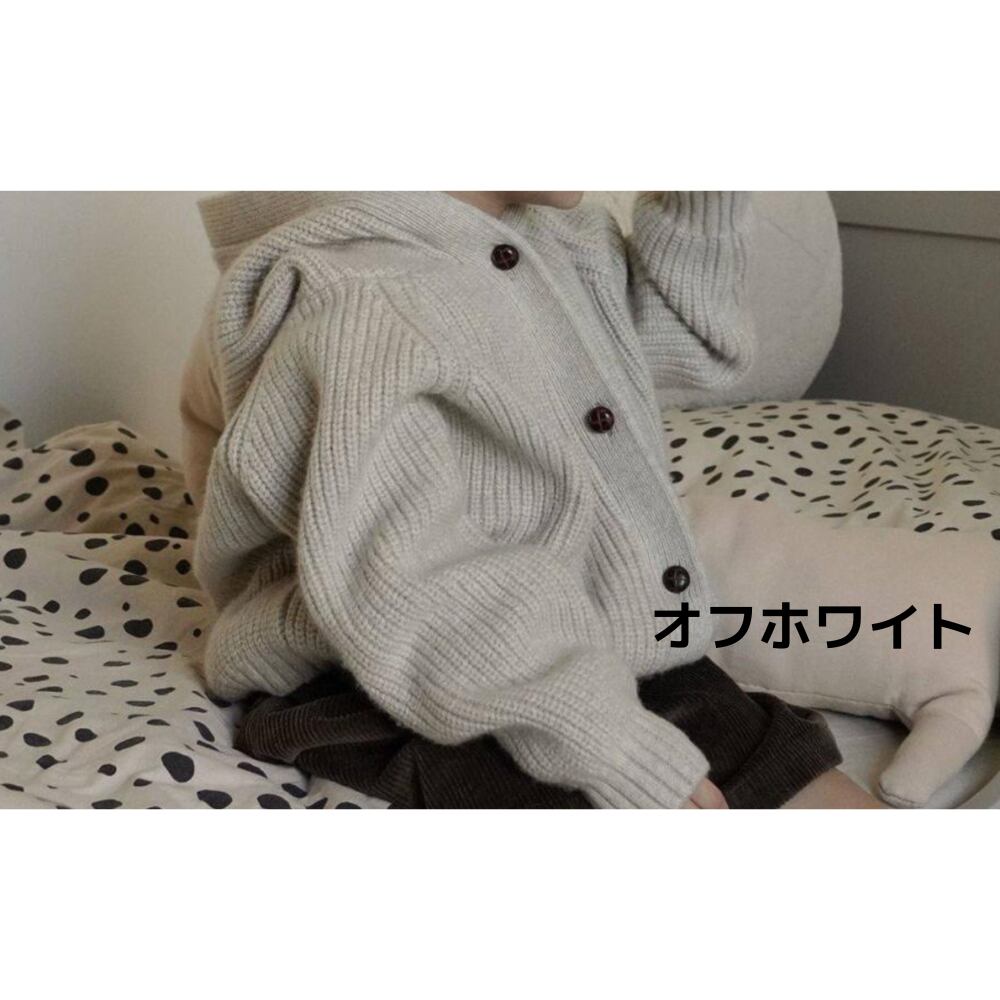 ふんわりニットの厚手カーディガン|ベビー・キッズ・アウター・羽織り・オフホワイト・ブラウン・チャコールグレー
