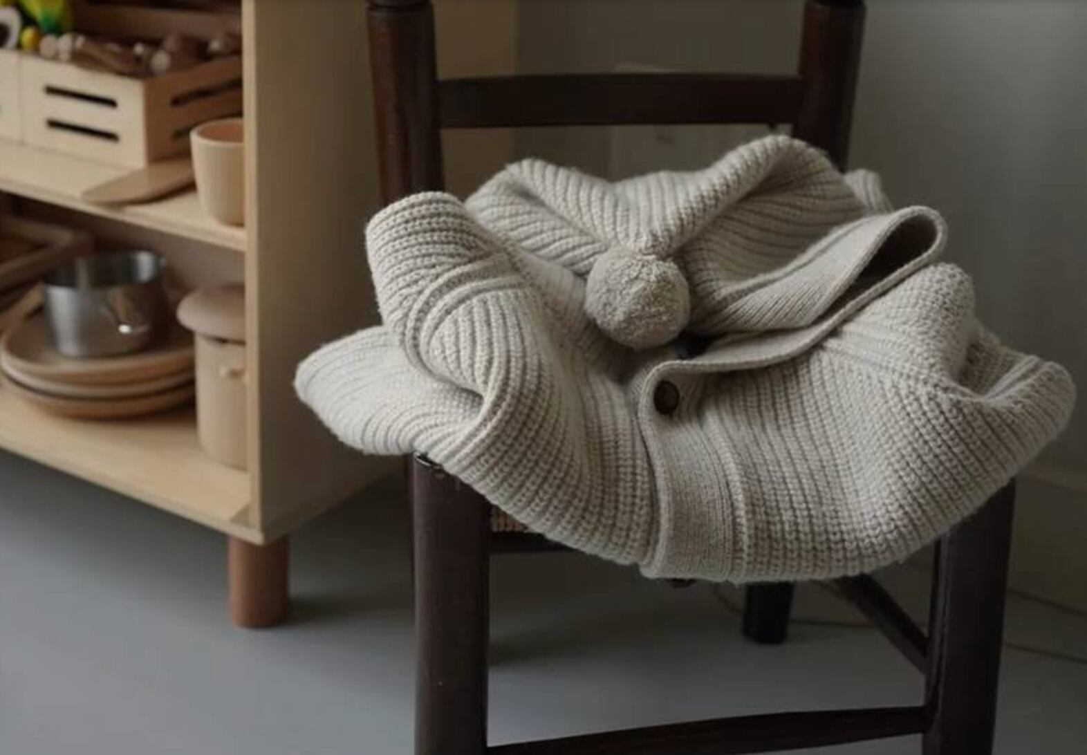 暖かみのある柔らかなニット素材を使用しており、チクチクしにくい優しい肌触りが魅力。程よい厚みがあるので、季節の変わり目のアウターとして、また寒い日の防寒着としても大活躍します。