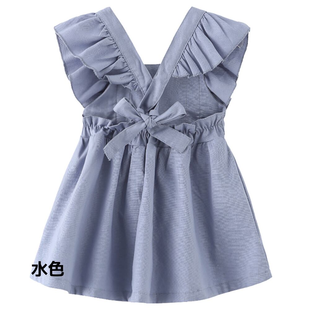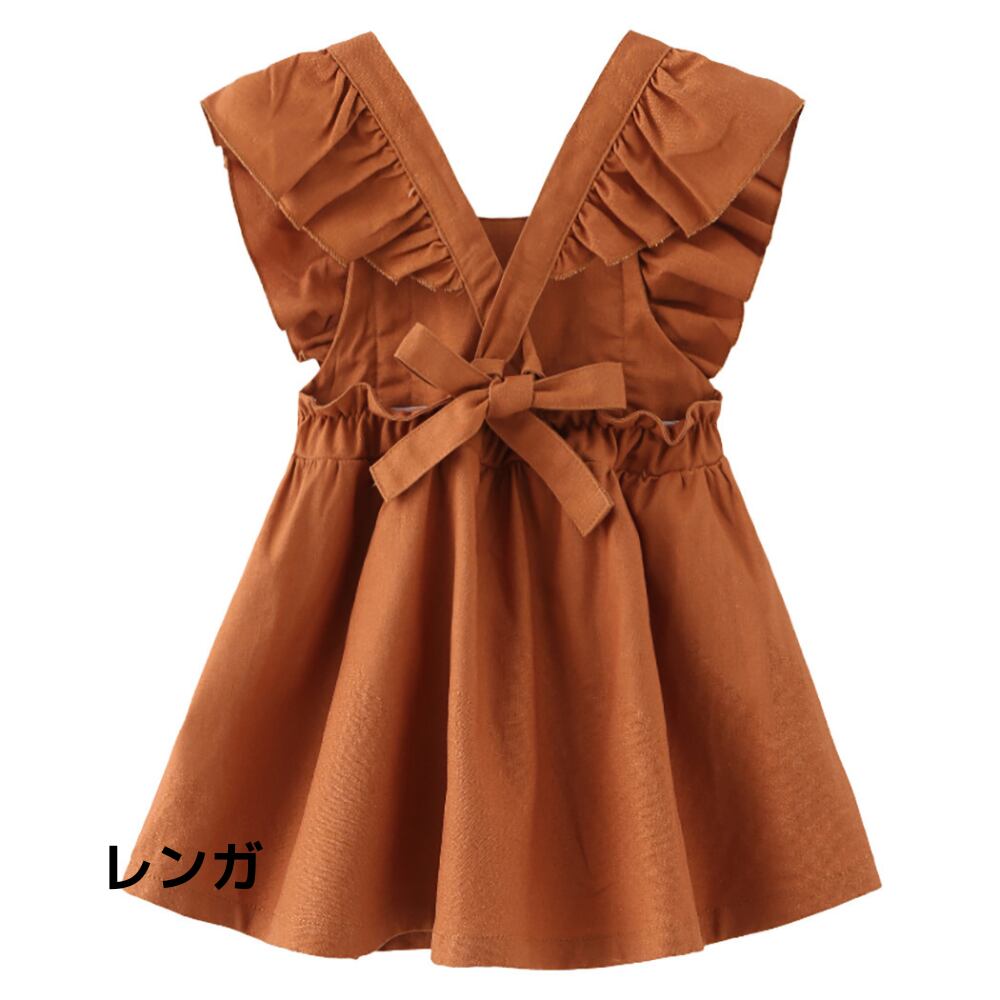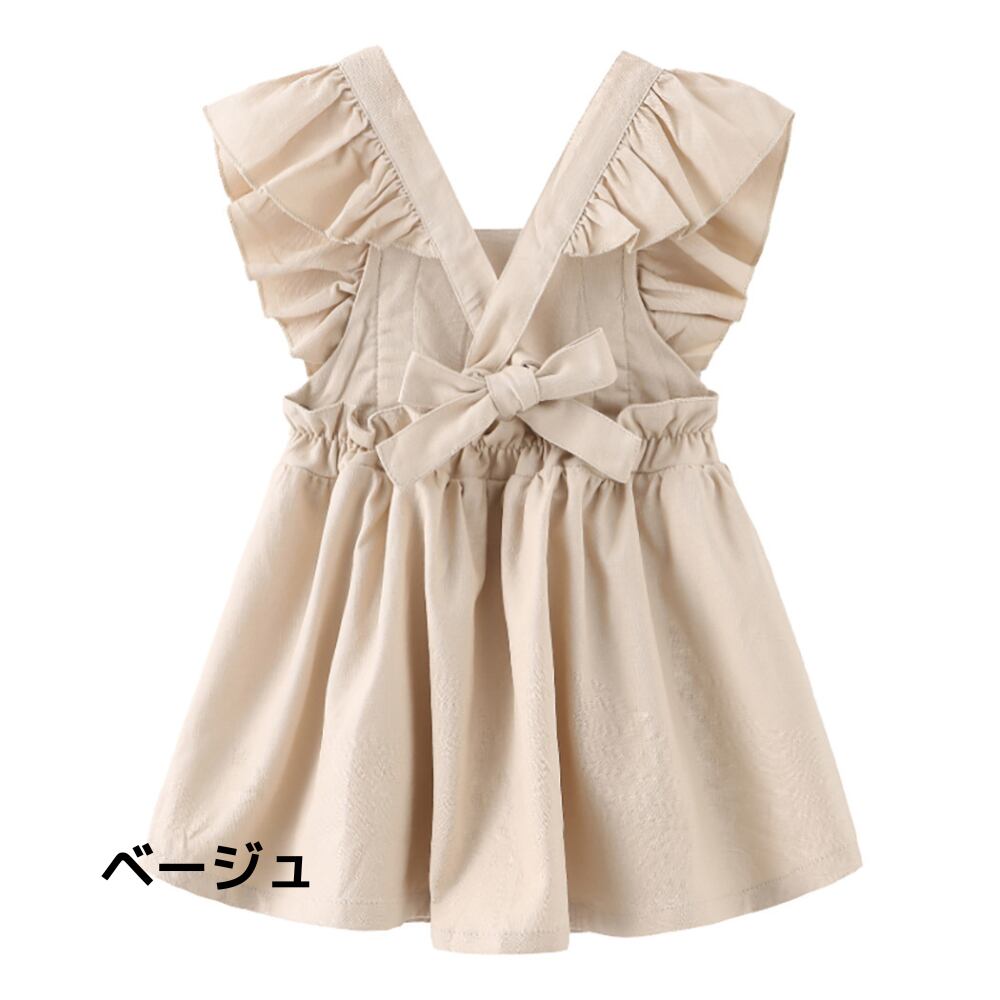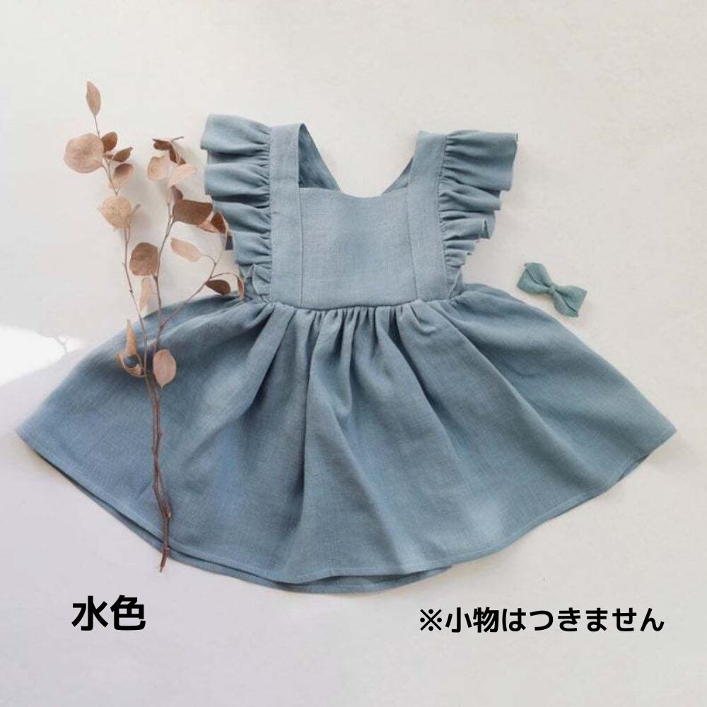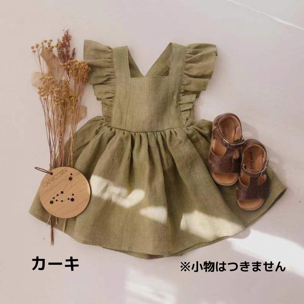 【綿麻の上質な風合い】大きな肩フリルのエプロン風ワンピース