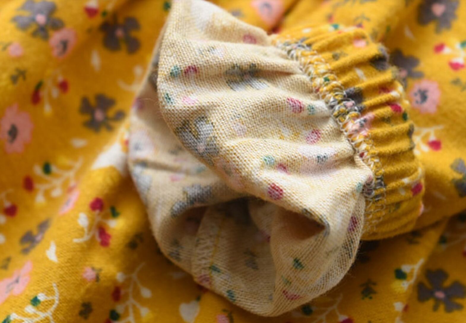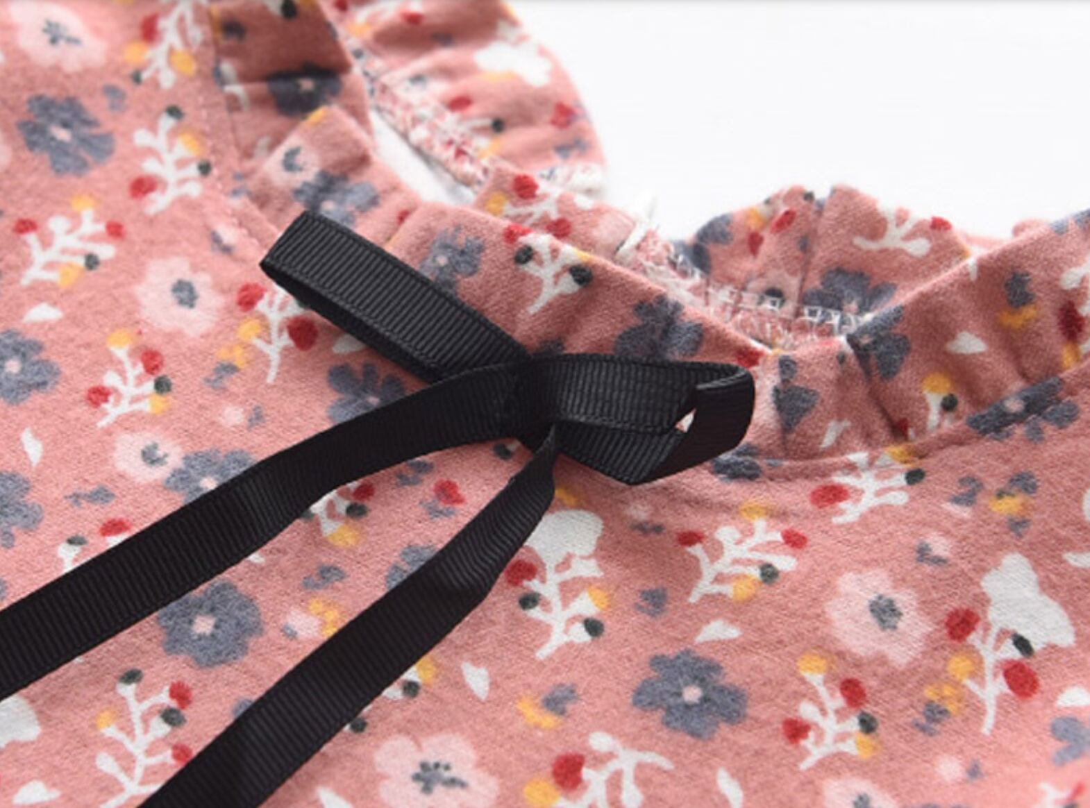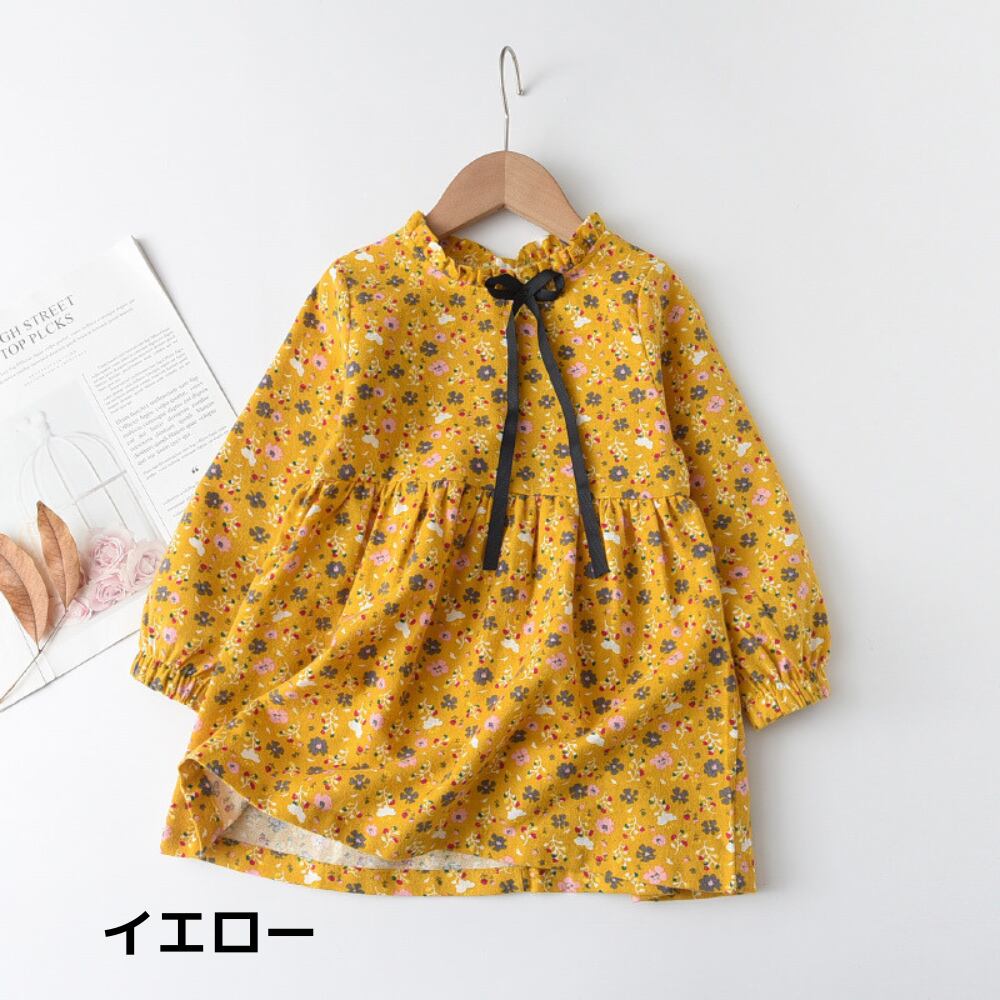 素材は綿を使用。天然素材の優しさを活かしつつ、程よく混紡することで、お洗濯後もシワになりにくく、デイリー使いにぴったりの質感に仕上げました。首元のフリル襟と華奢なブラックリボンが、お子様の可愛らしさをより一層引き立ててくれます。