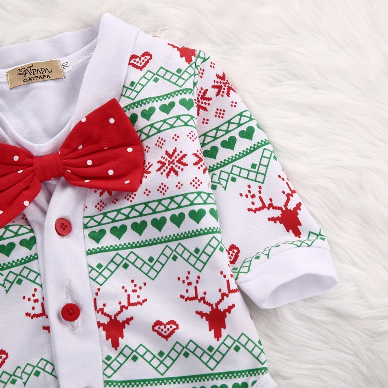ベビーロンパース クリスマス柄 ツーピース リボン 蝶ネクタイ 男の子 女の子 ユニセックス 長袖 秋冬 秋 冬