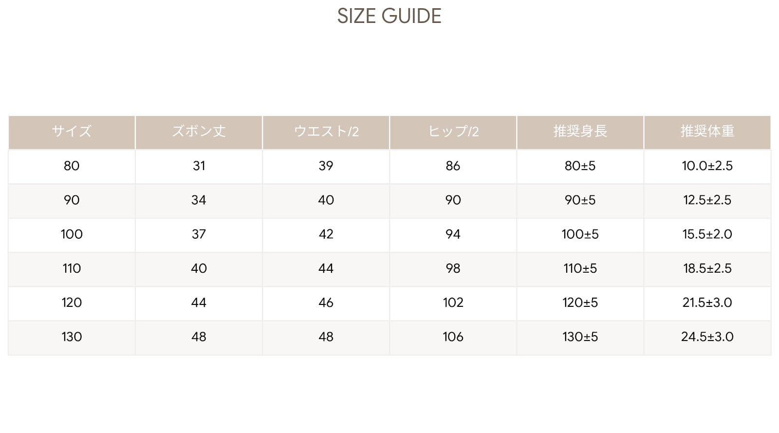 【サイズ目安(身長)】