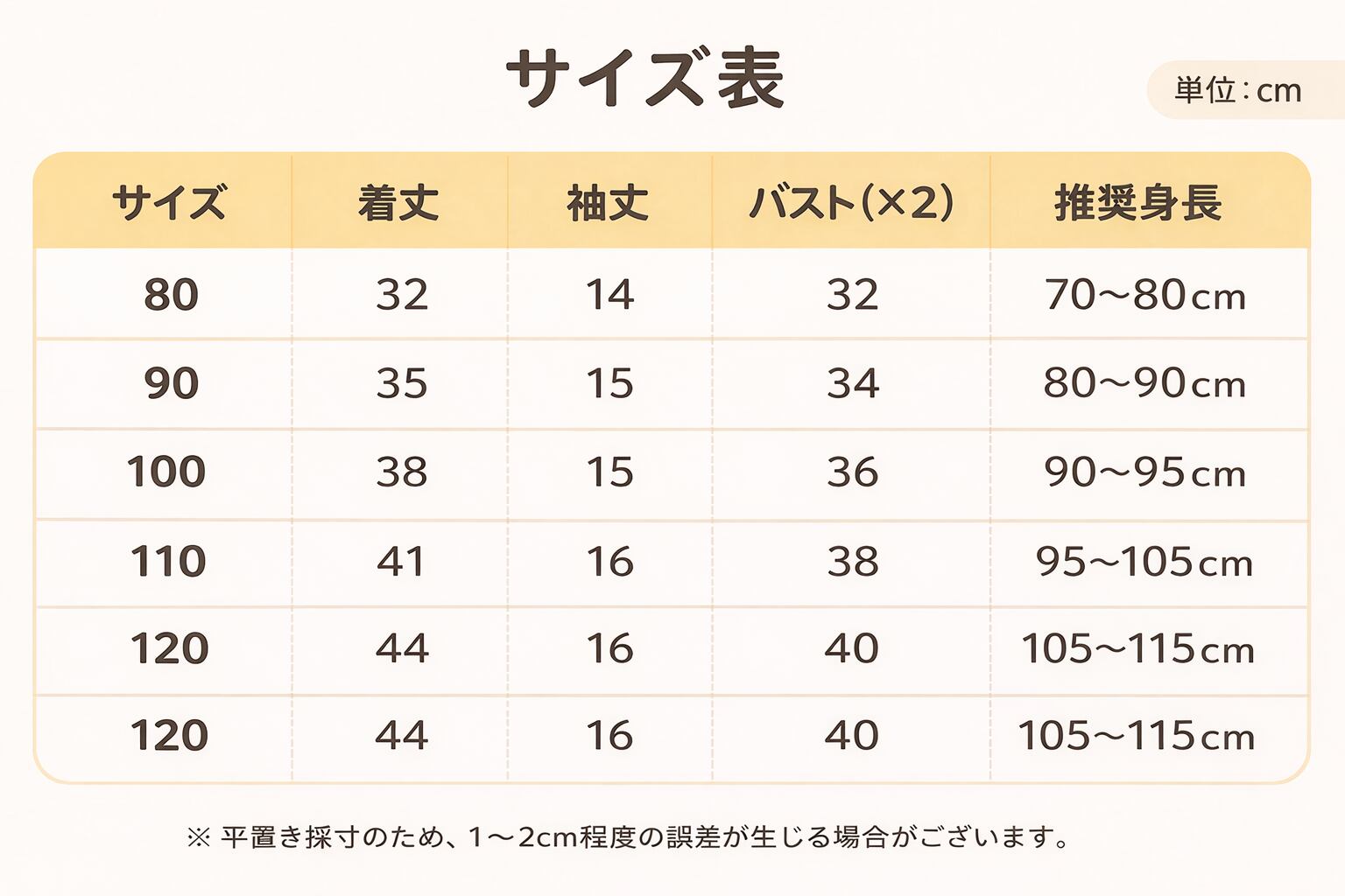 【サイズ目安(身長)】