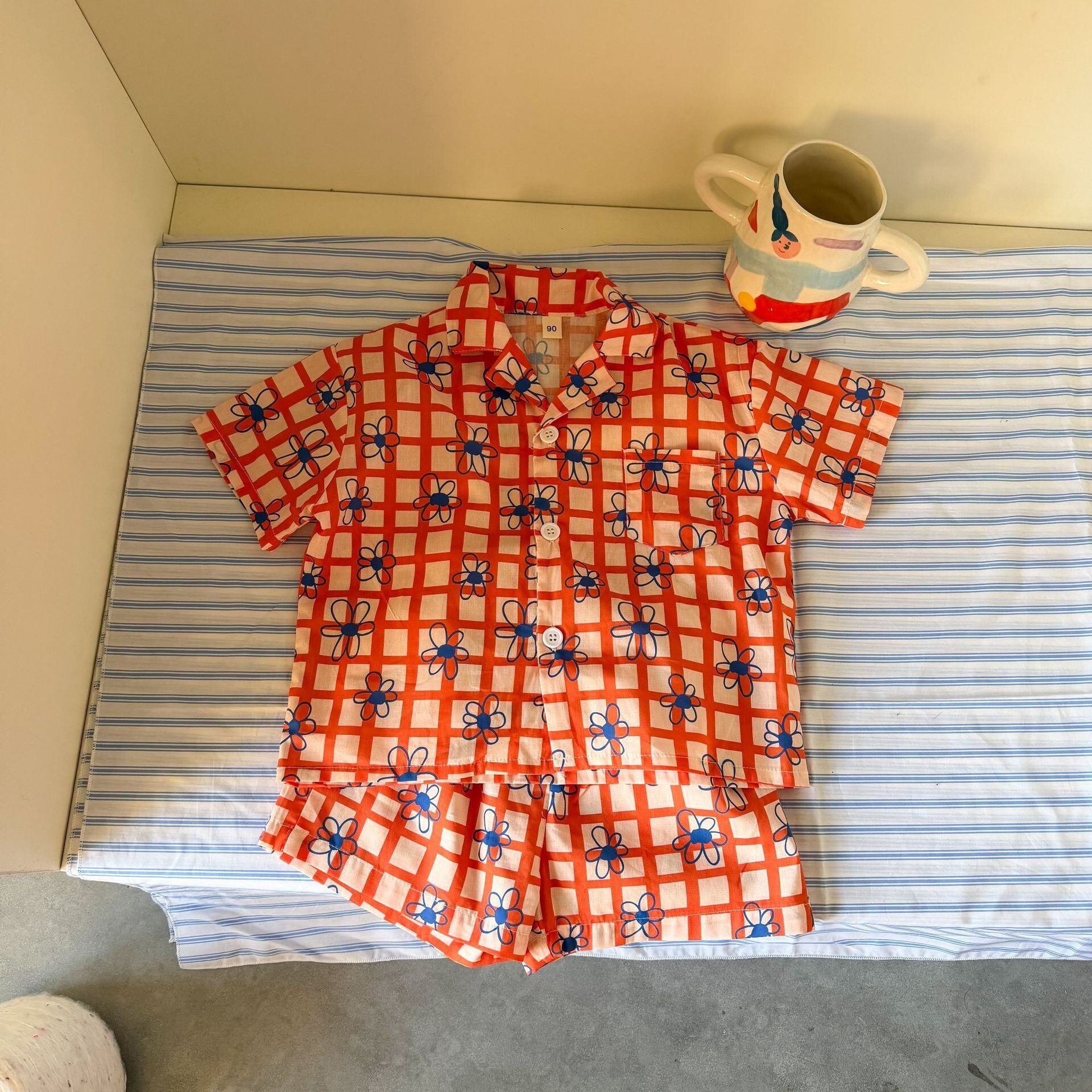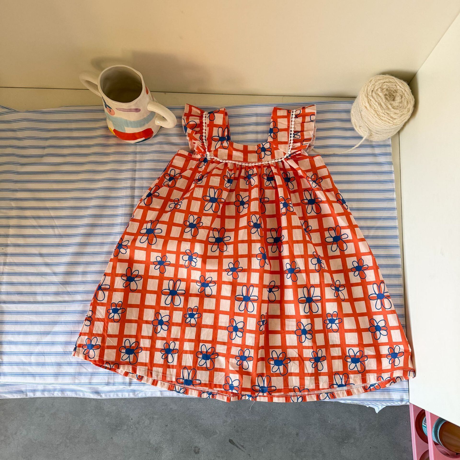レトロなチェック柄に、小さなお花が散りばめられた