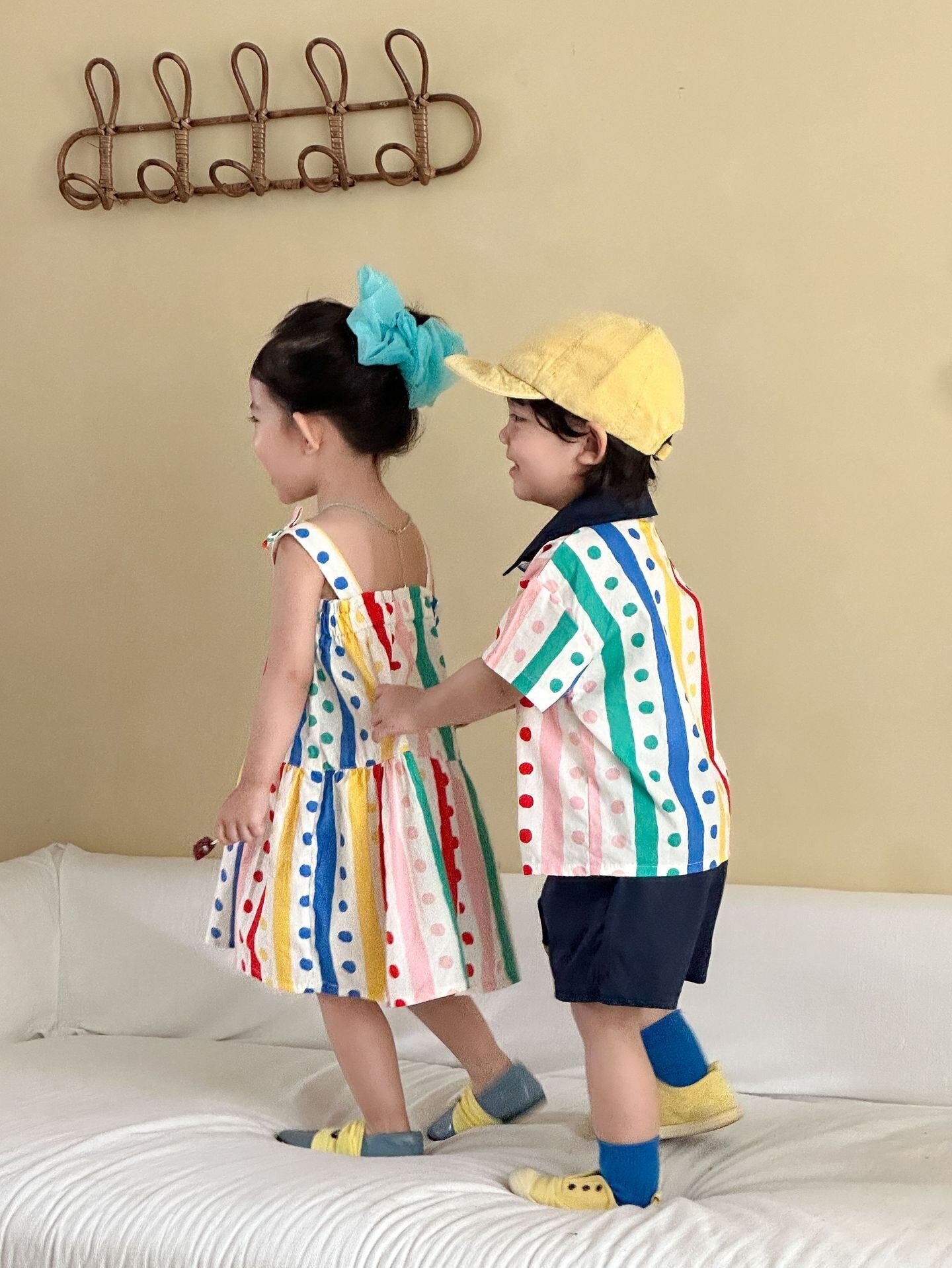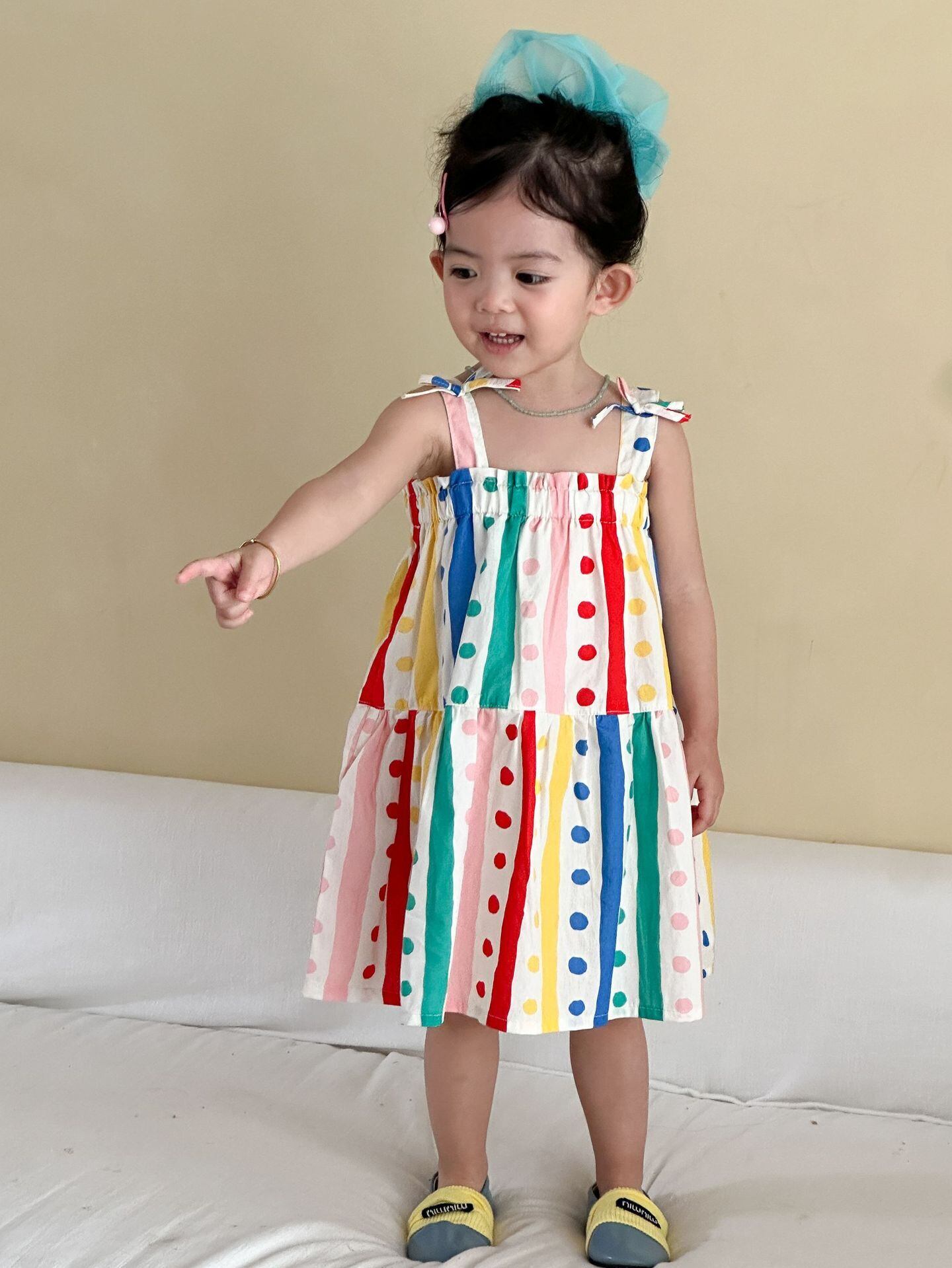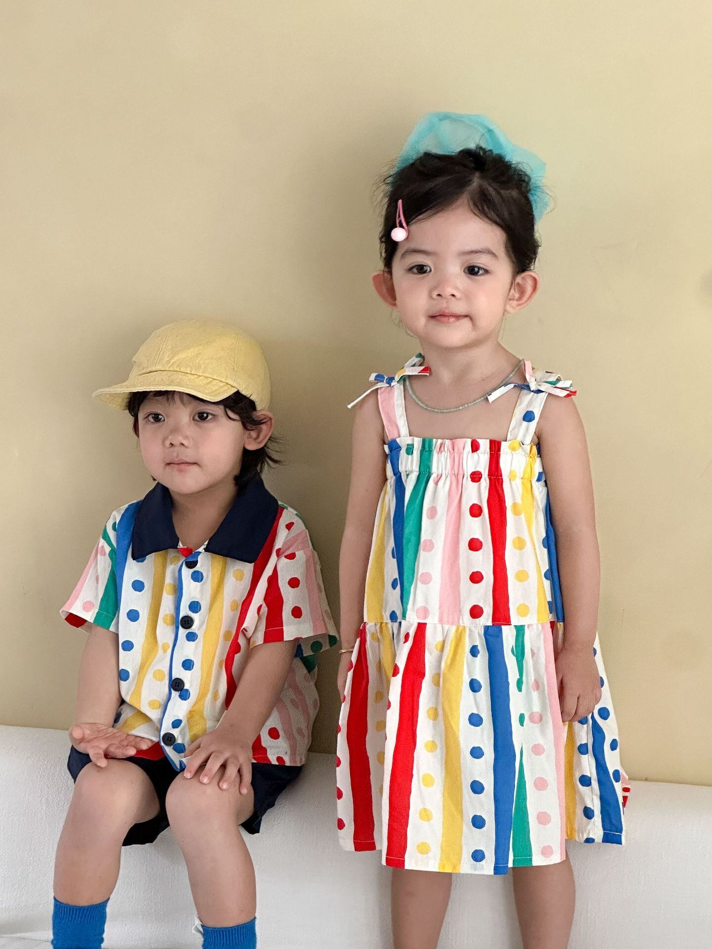 レインボーストライプ&ドット キッズセットアップ・ワンピース / 80-150cm