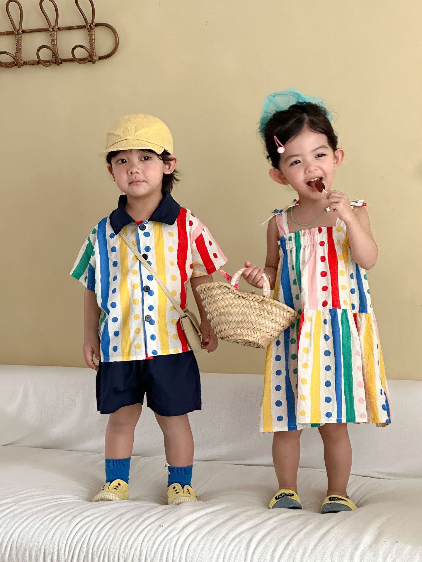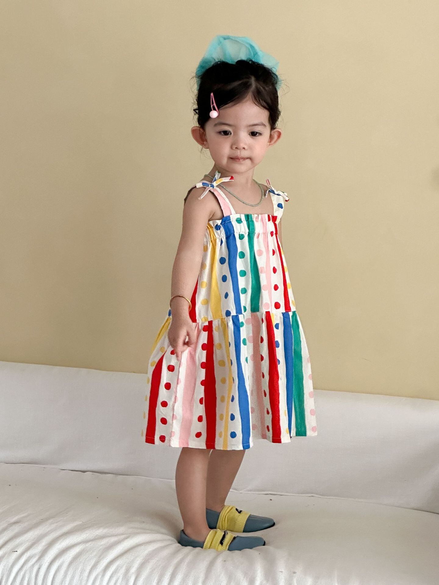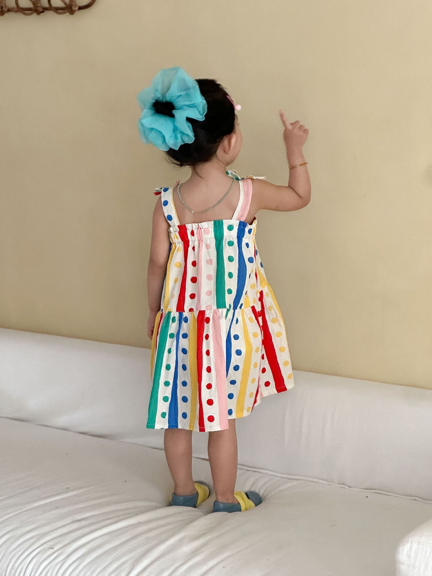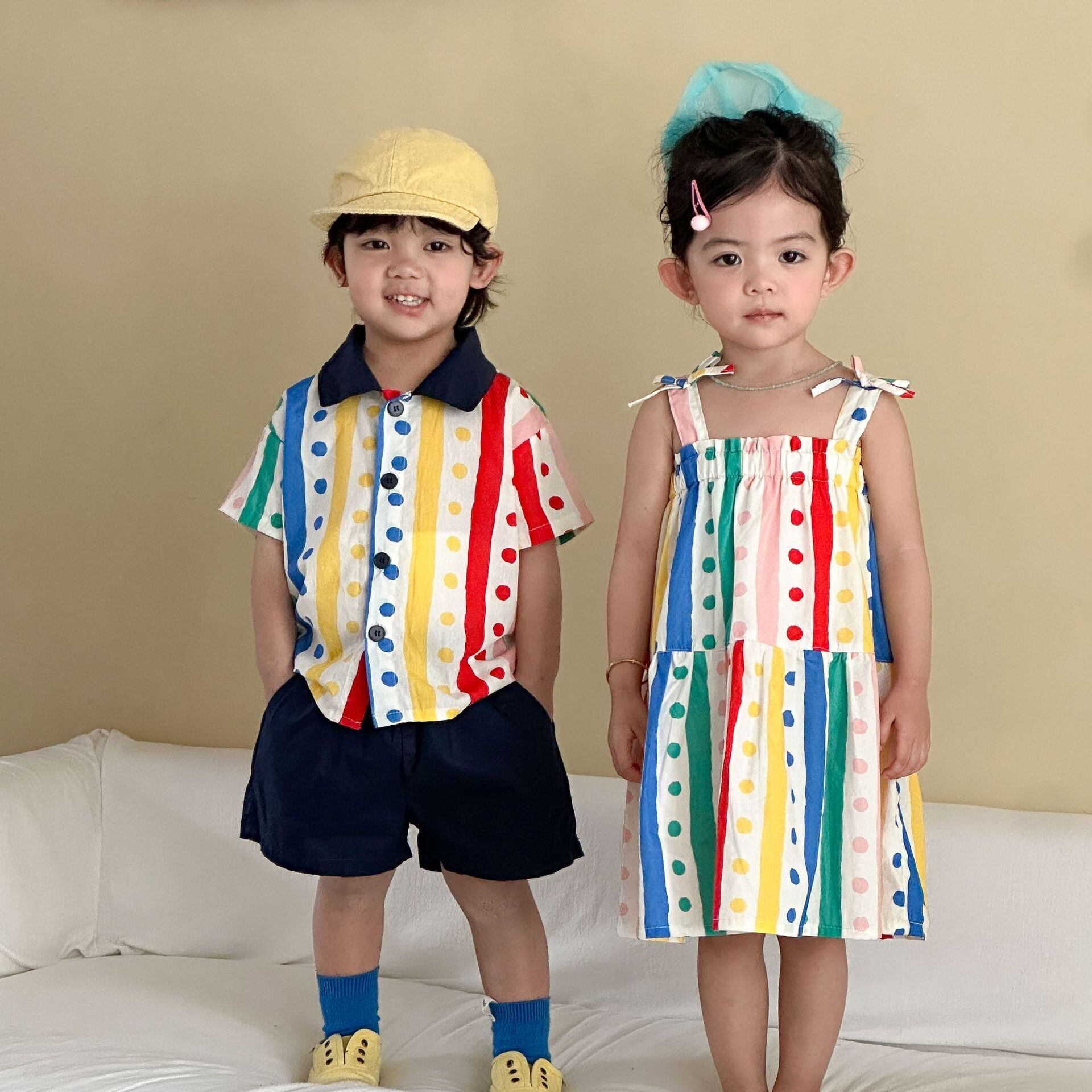 レインボーストライプ&ドット キッズセットアップ・ワンピース / 80-150cm