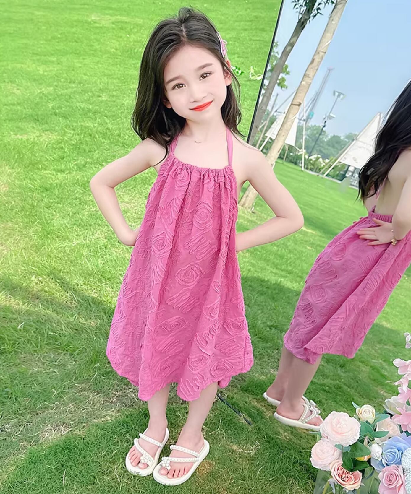 フレンチ刺繍 ボヘミアンホルターネックワンピース / 90-140cm