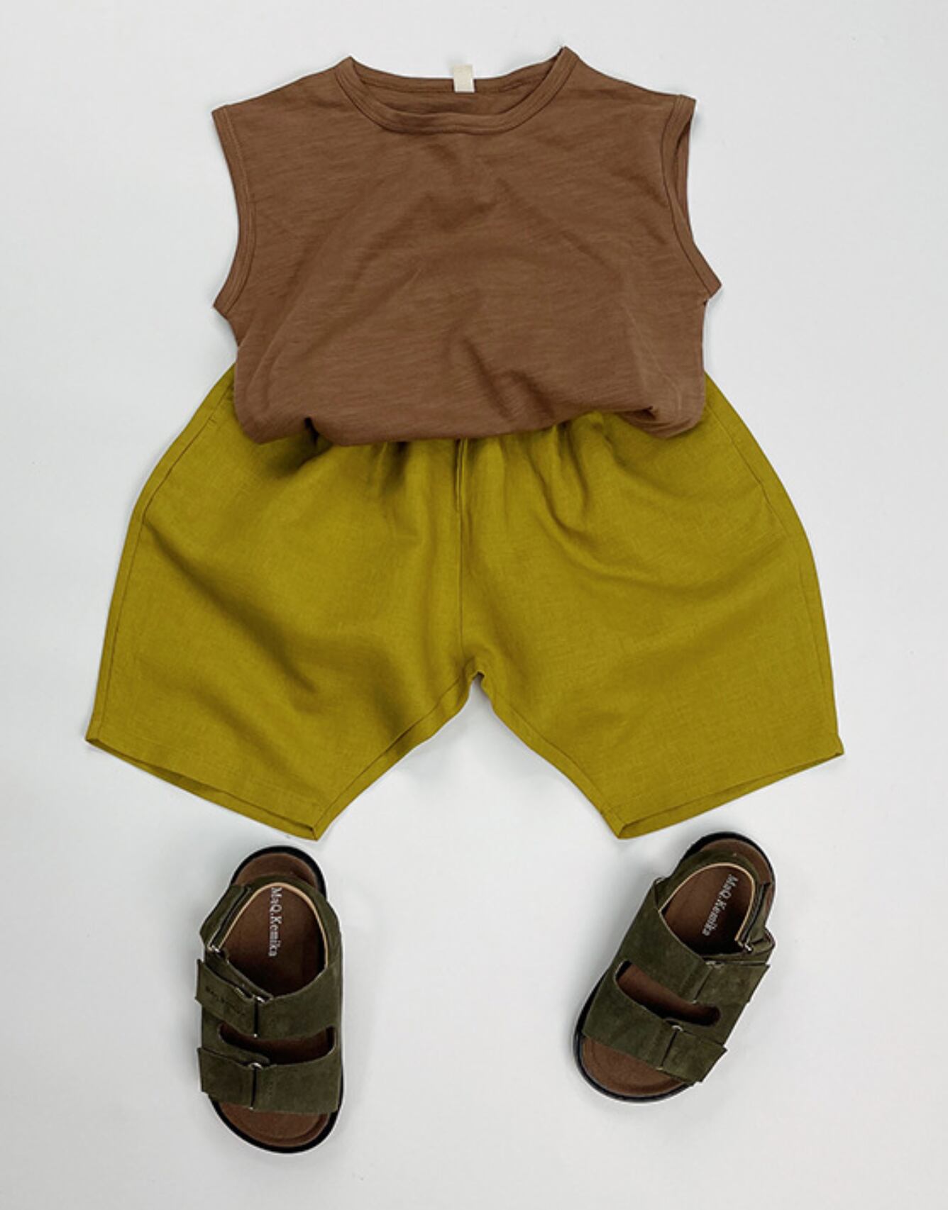 やわらかリネン風 バルーン六分丈パンツ / 80 90 100 110 120 130