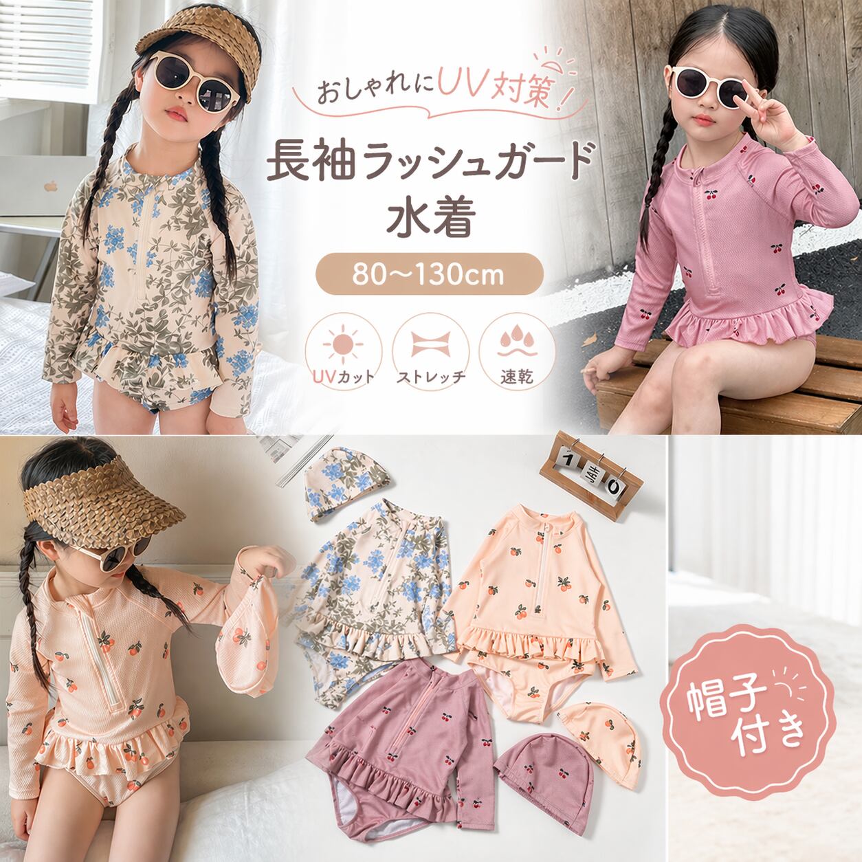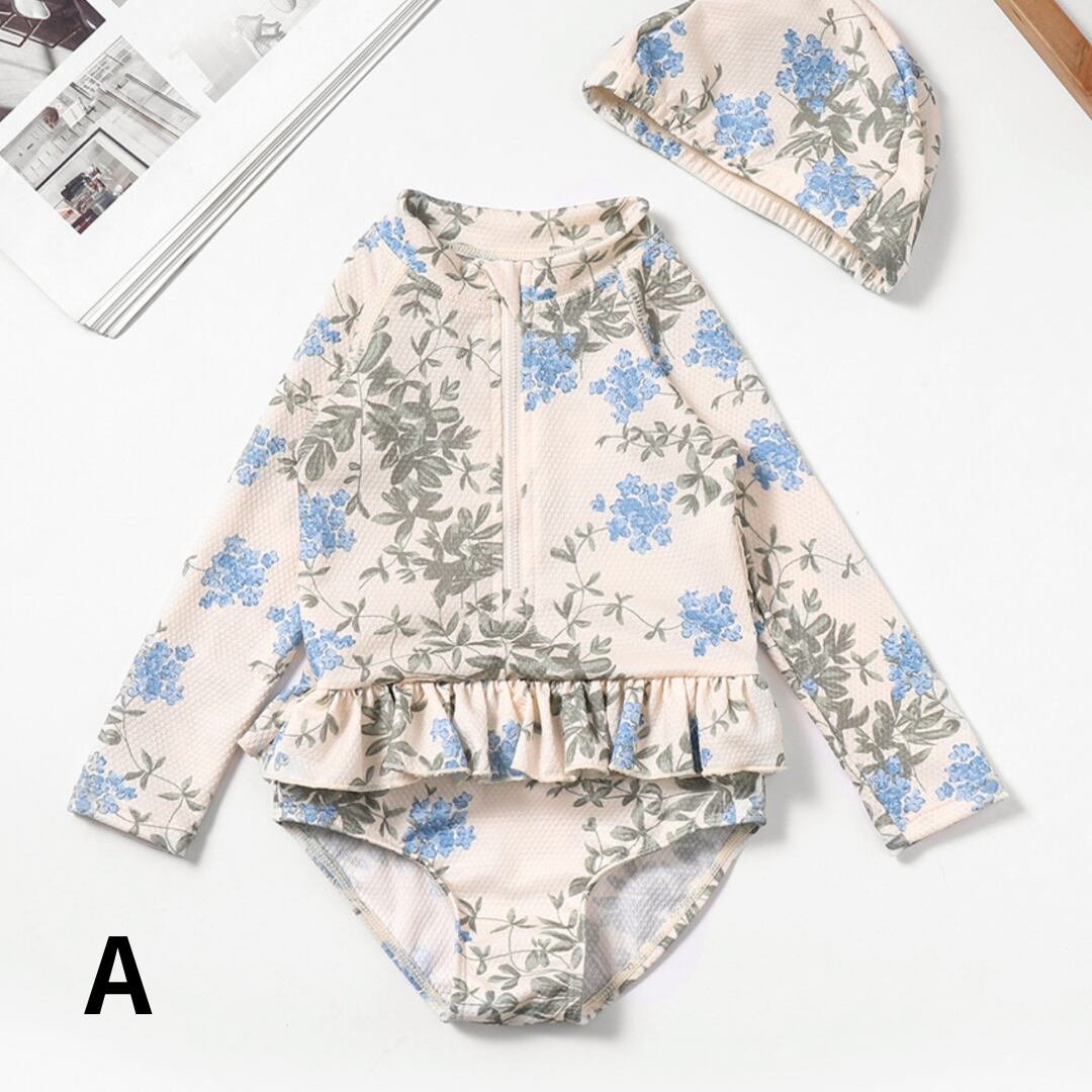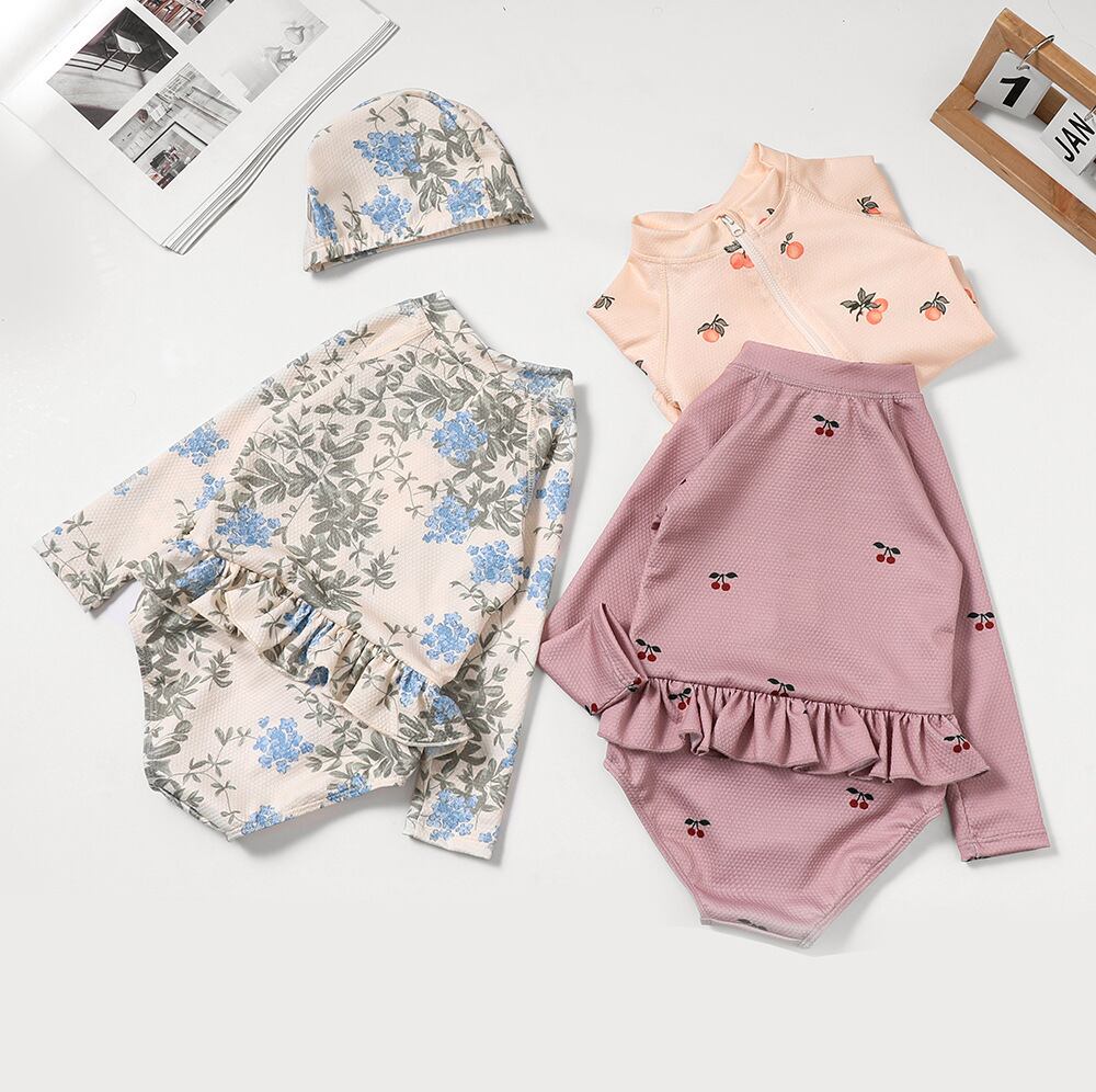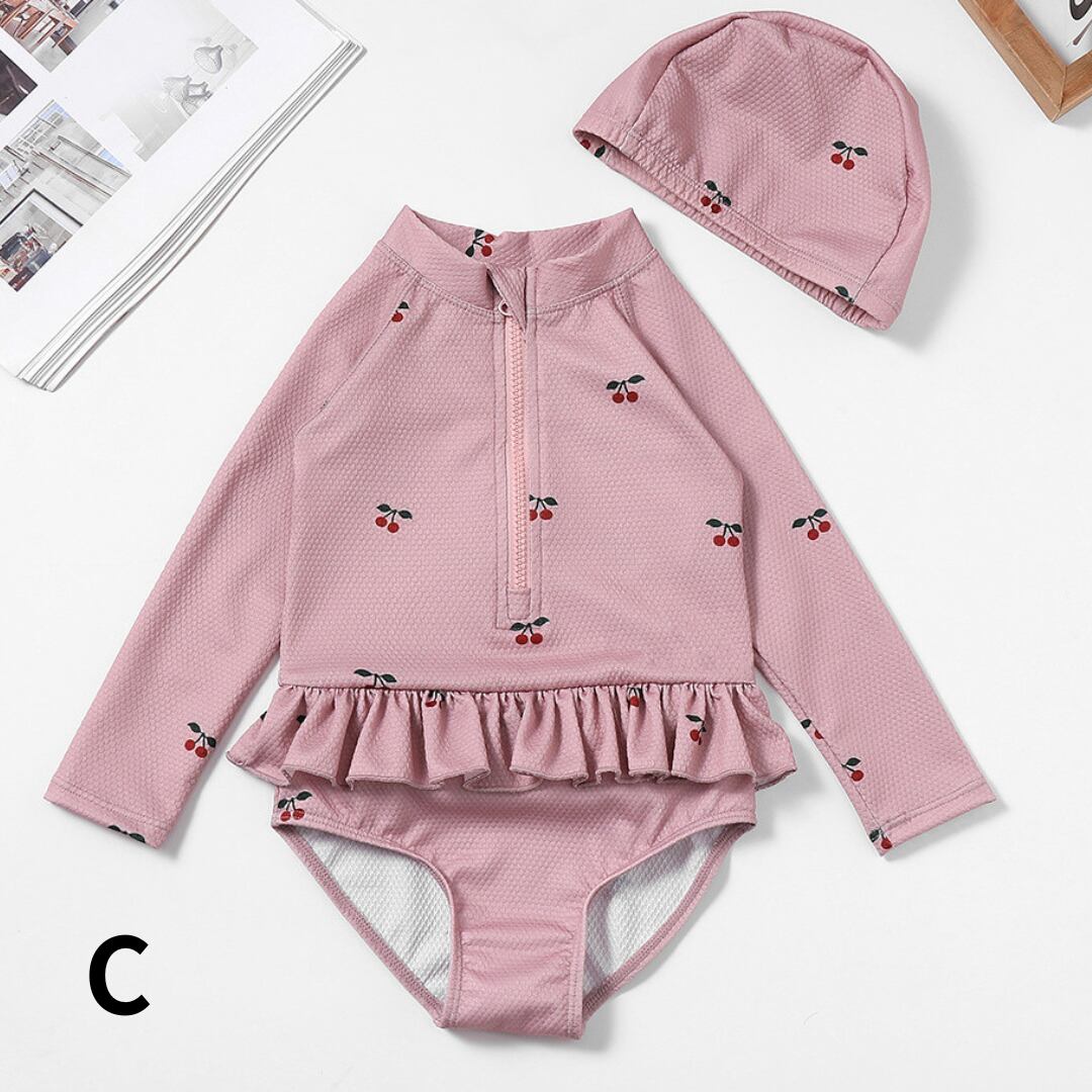 フルーツ柄フリル ワンピース水着(水泳帽セット)/ 80 90 100 110 120 130
