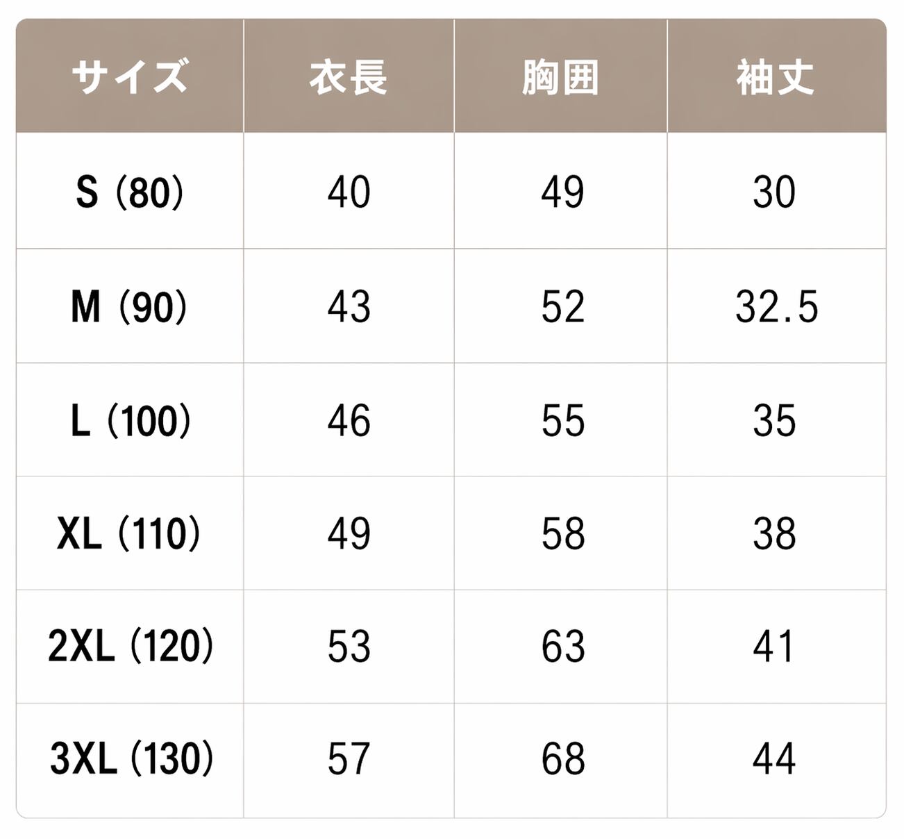 【サイズ目安(身長)】
