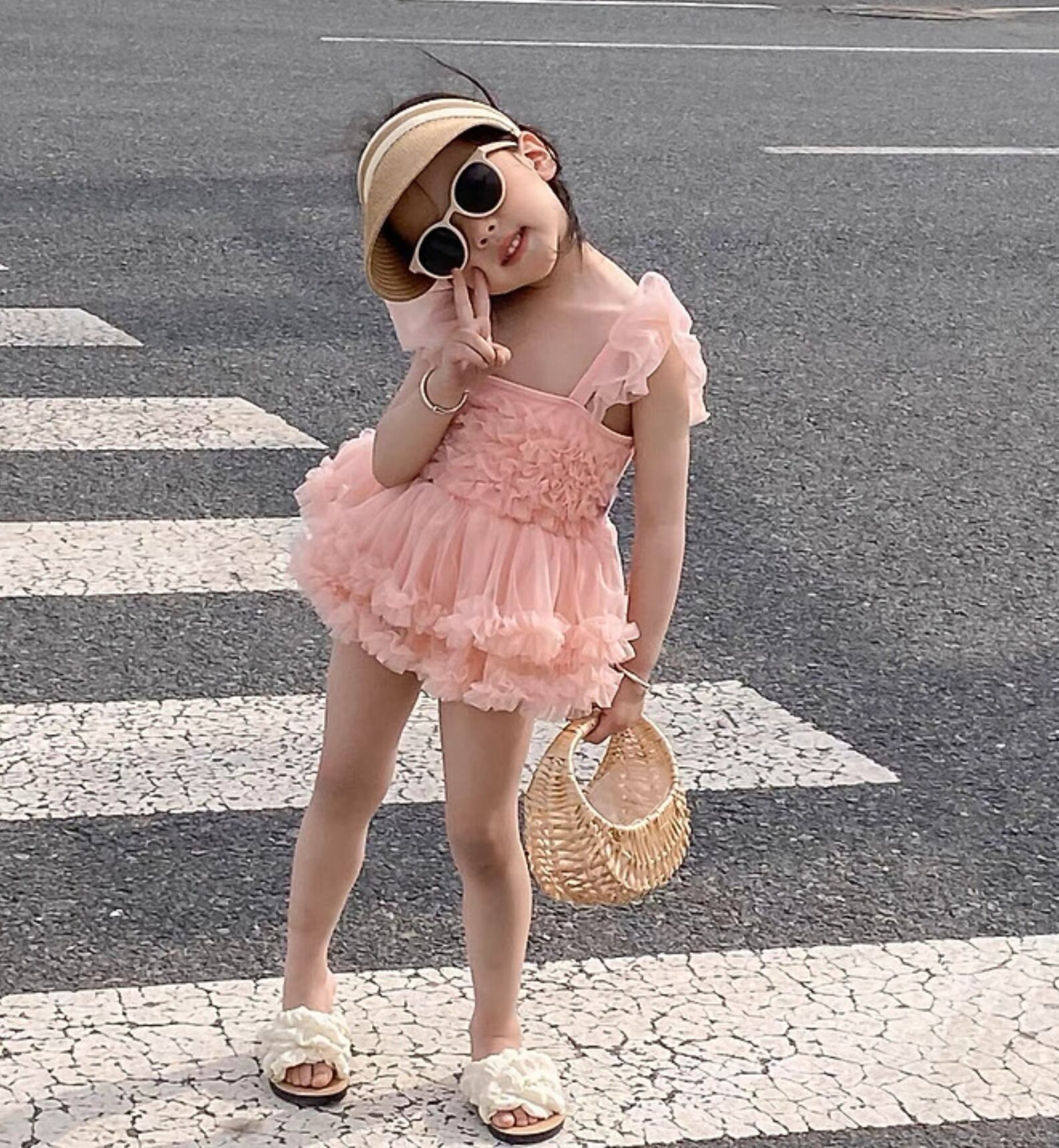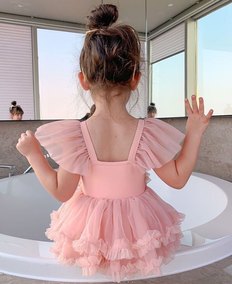 着るだけで主役になれる、華やかなフリルデザインのキッズ水着。