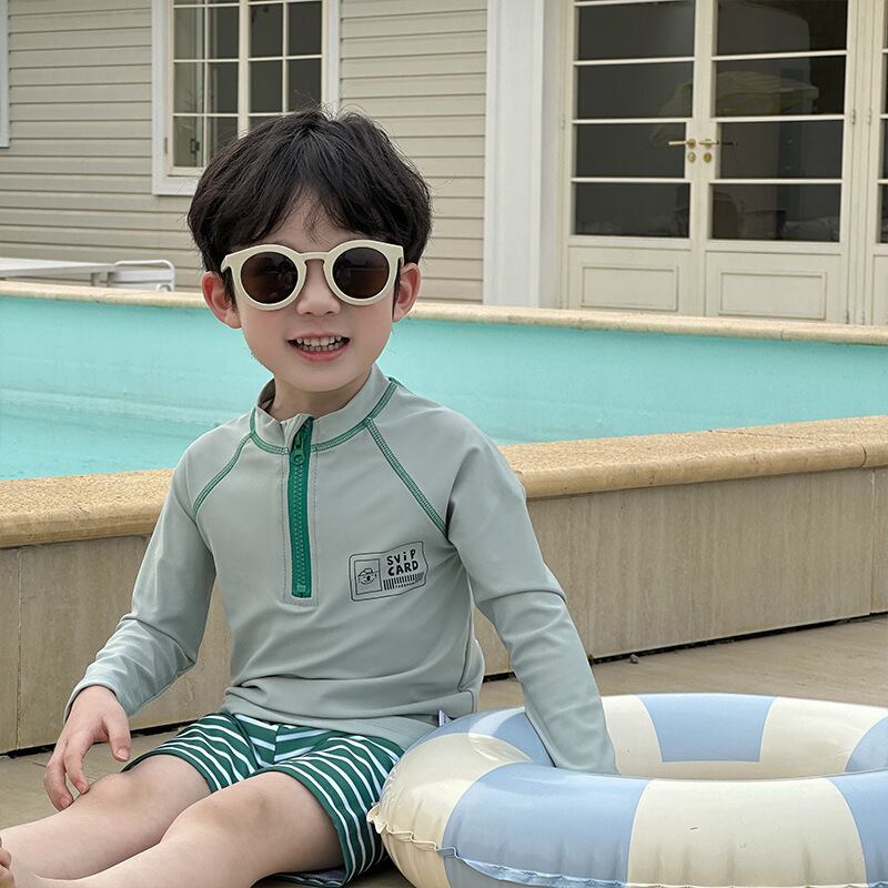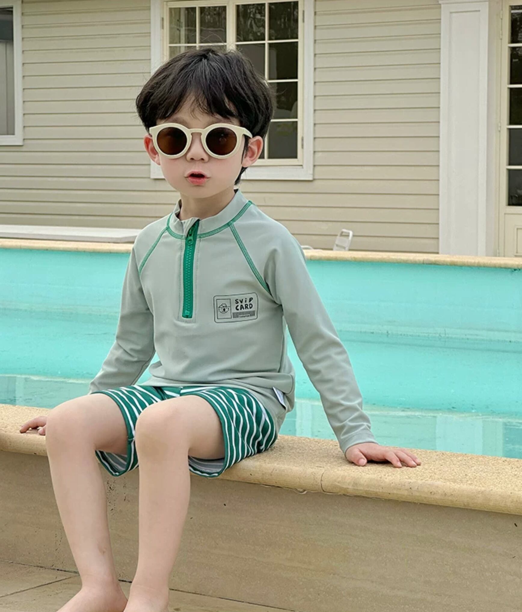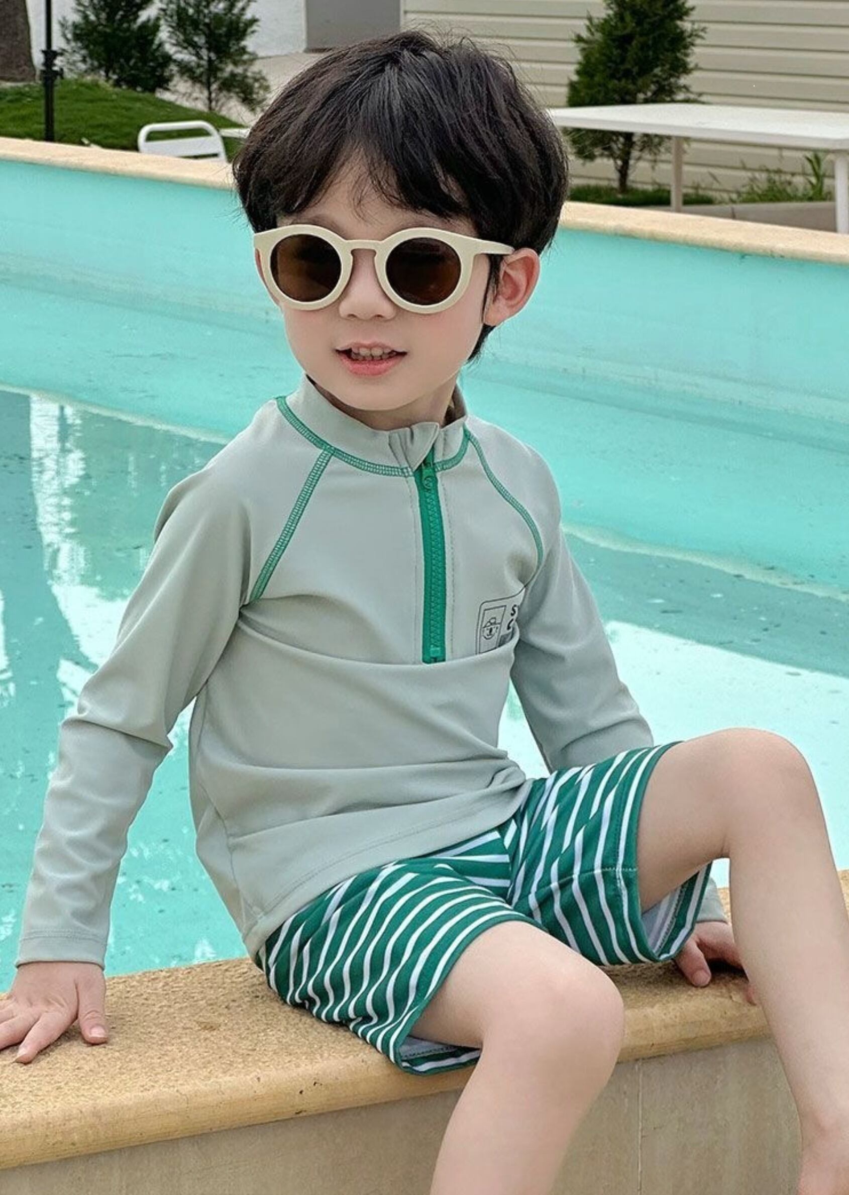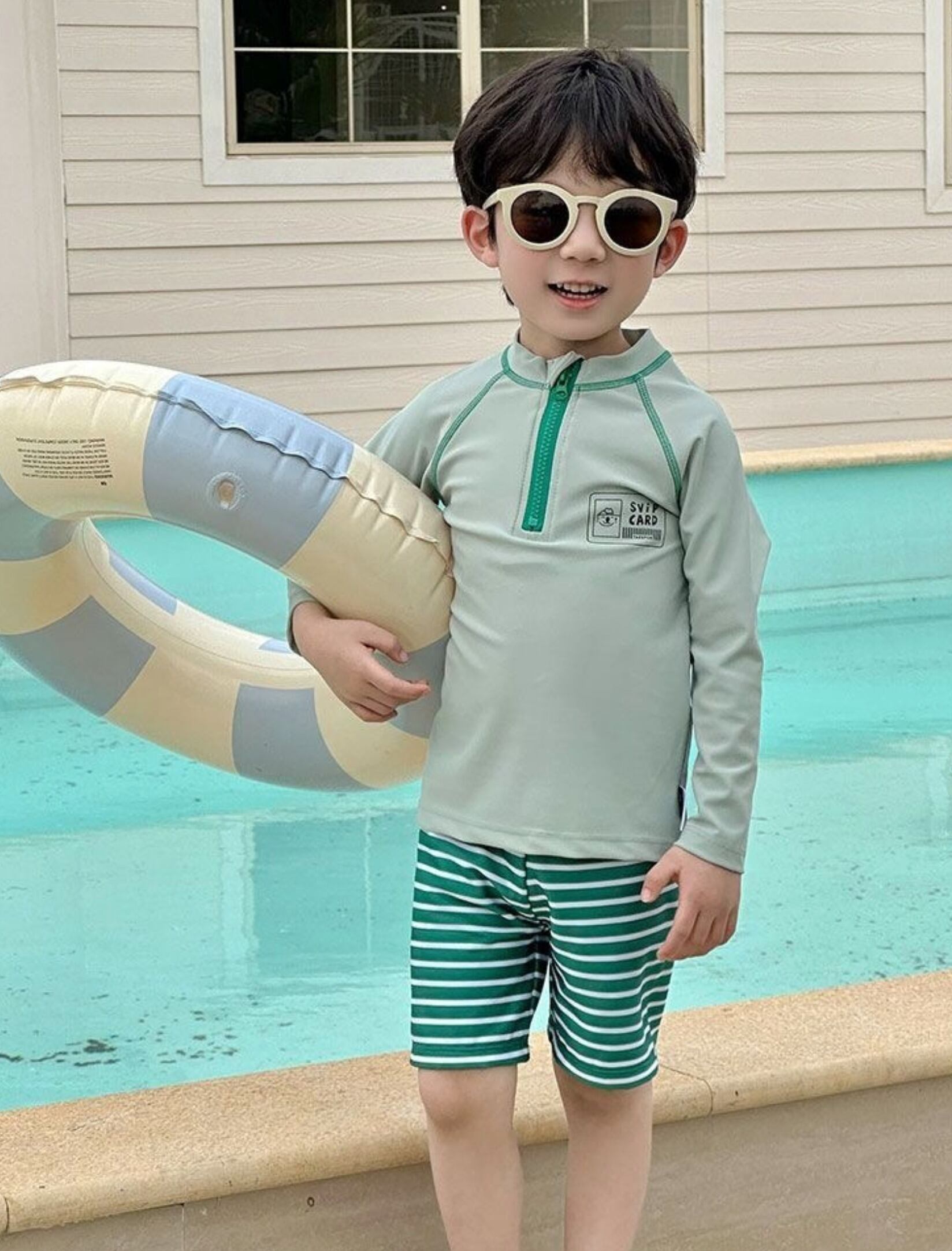爽やかなグリーンストライプで、夏のアクティブシーンにぴったりな**長袖ラッシュガードセット**♡