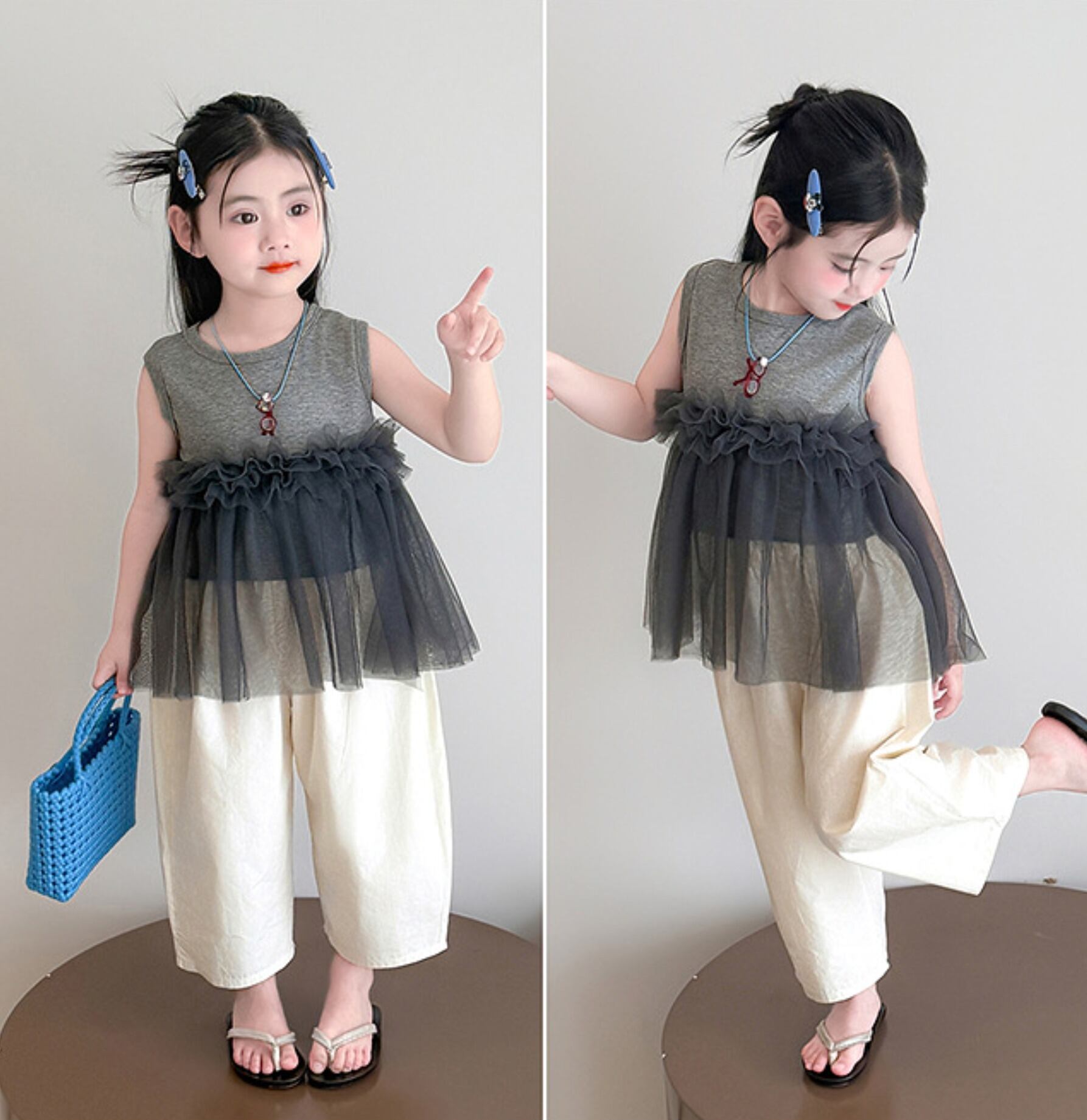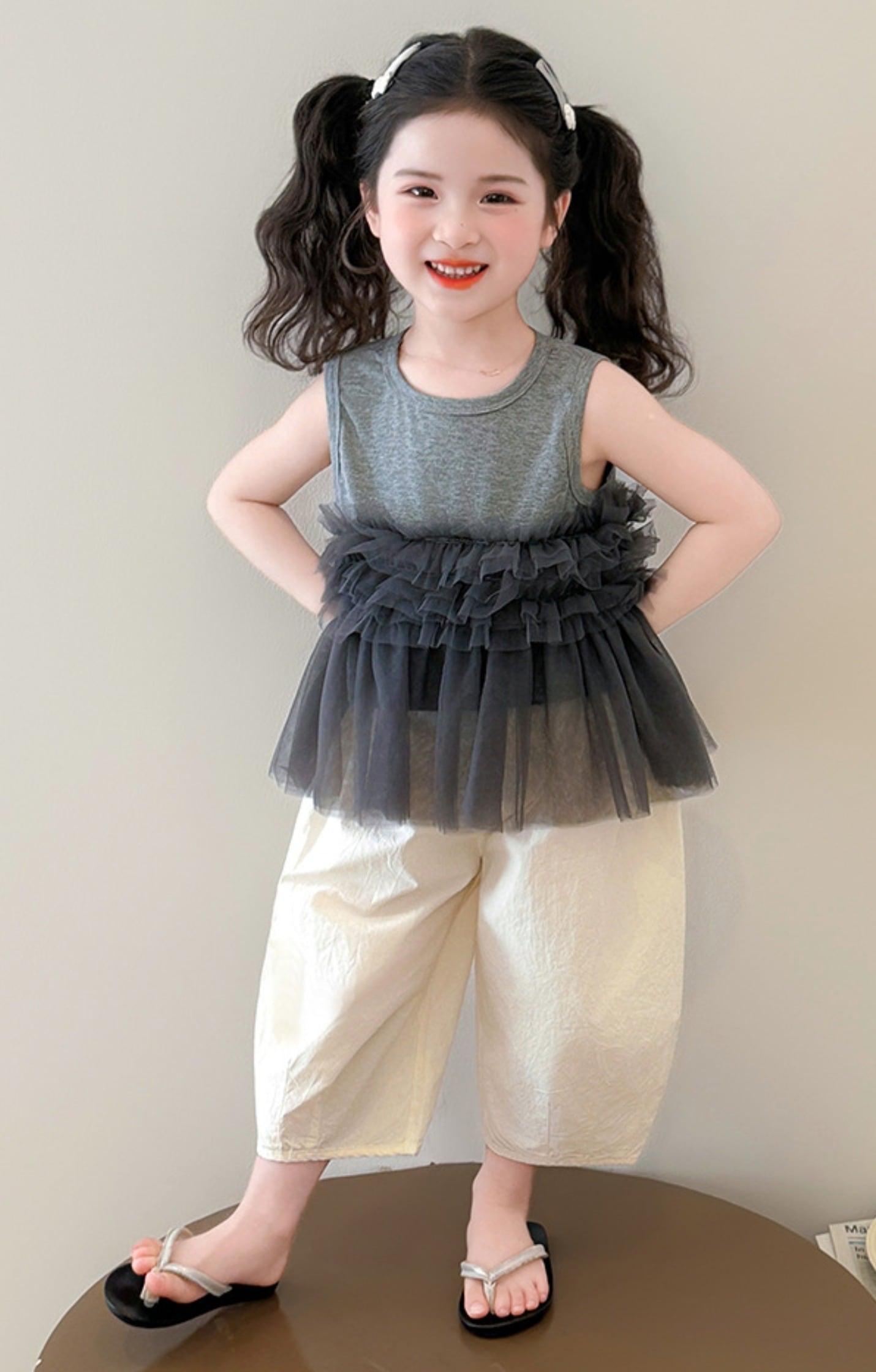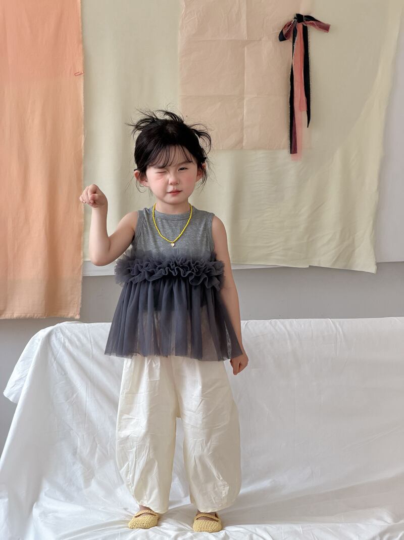 韓国子供服 / キッズ服 / タンクトップ / ペプラム / チュール / ノースリーブ / 夏服 / お出かけ着 / 女の子