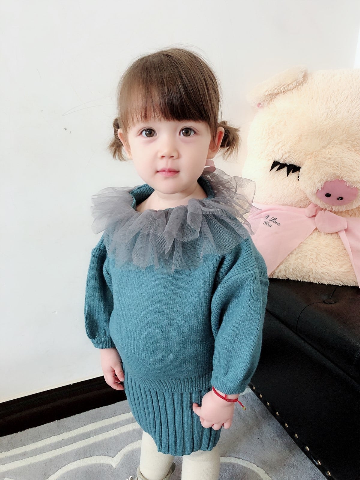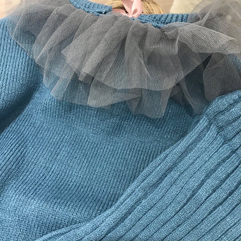 女の子 ニットセットアップ キッズ 子供 ベビー ツーピース 上下セット スーツ トップス ニット セーター ニットワンピース チュール 襟付き ワンピース 子供服 冬 冬新作 パーティー クリスマス プレゼント ギフト 韓国子供服 韓国