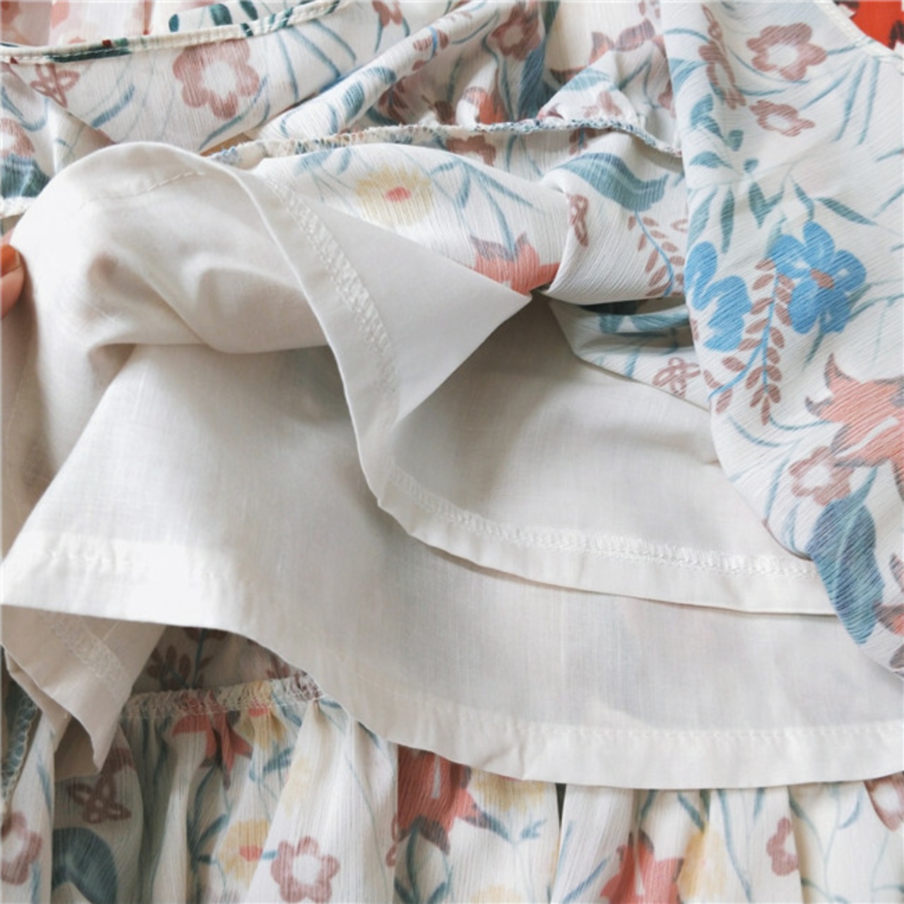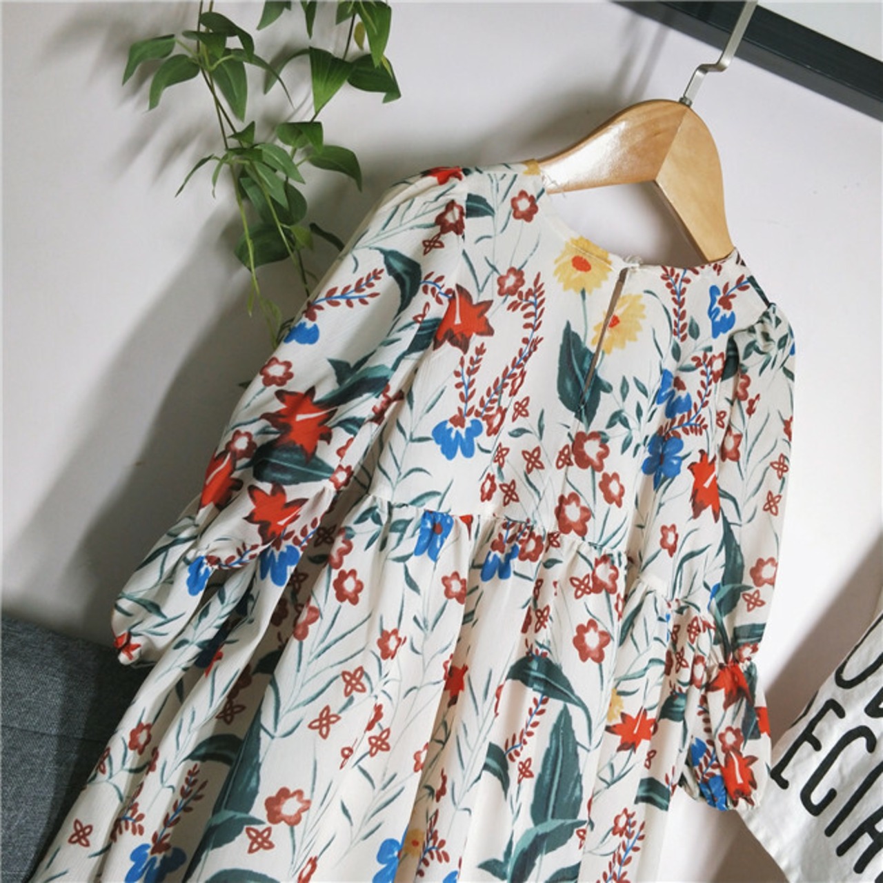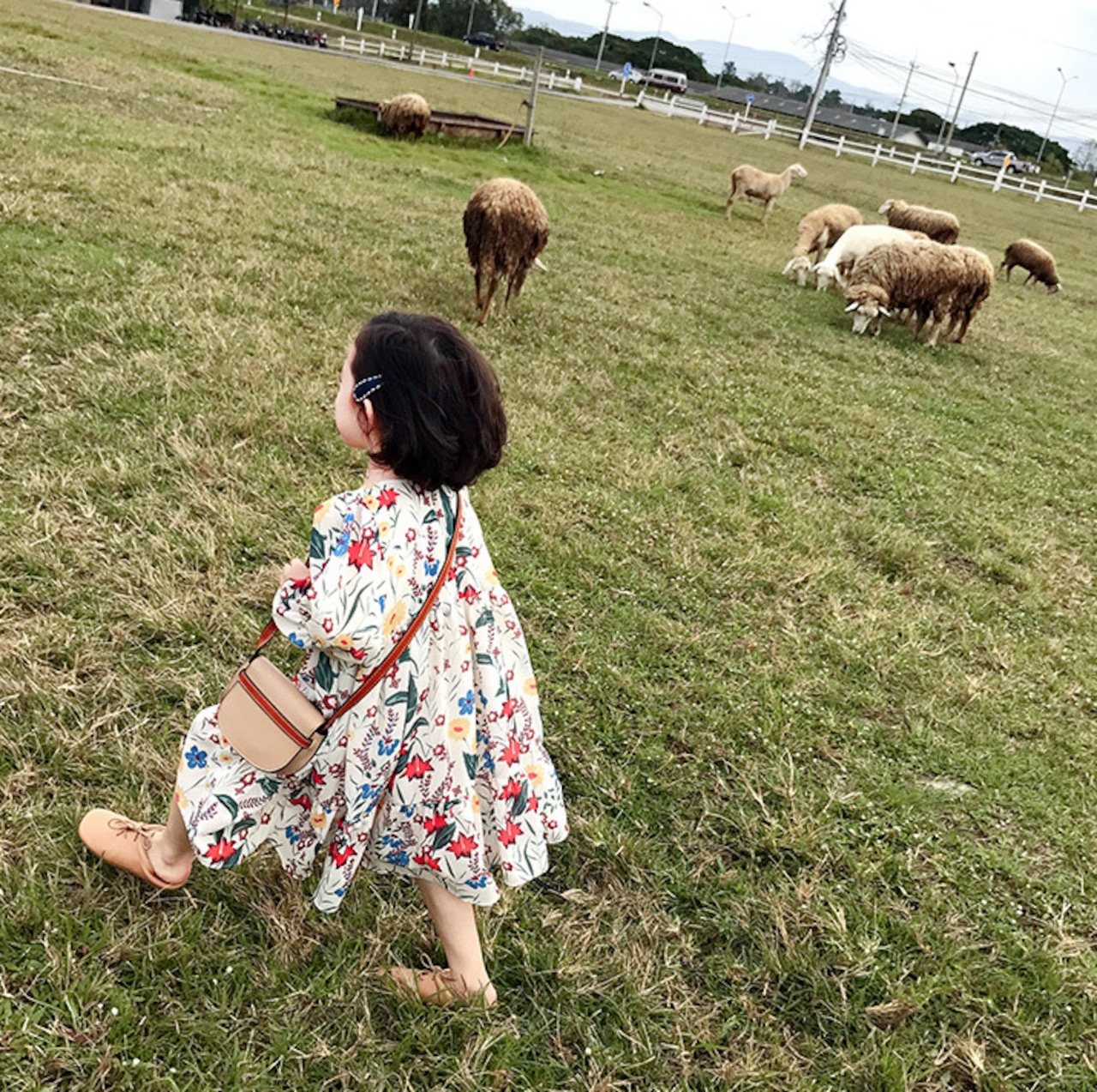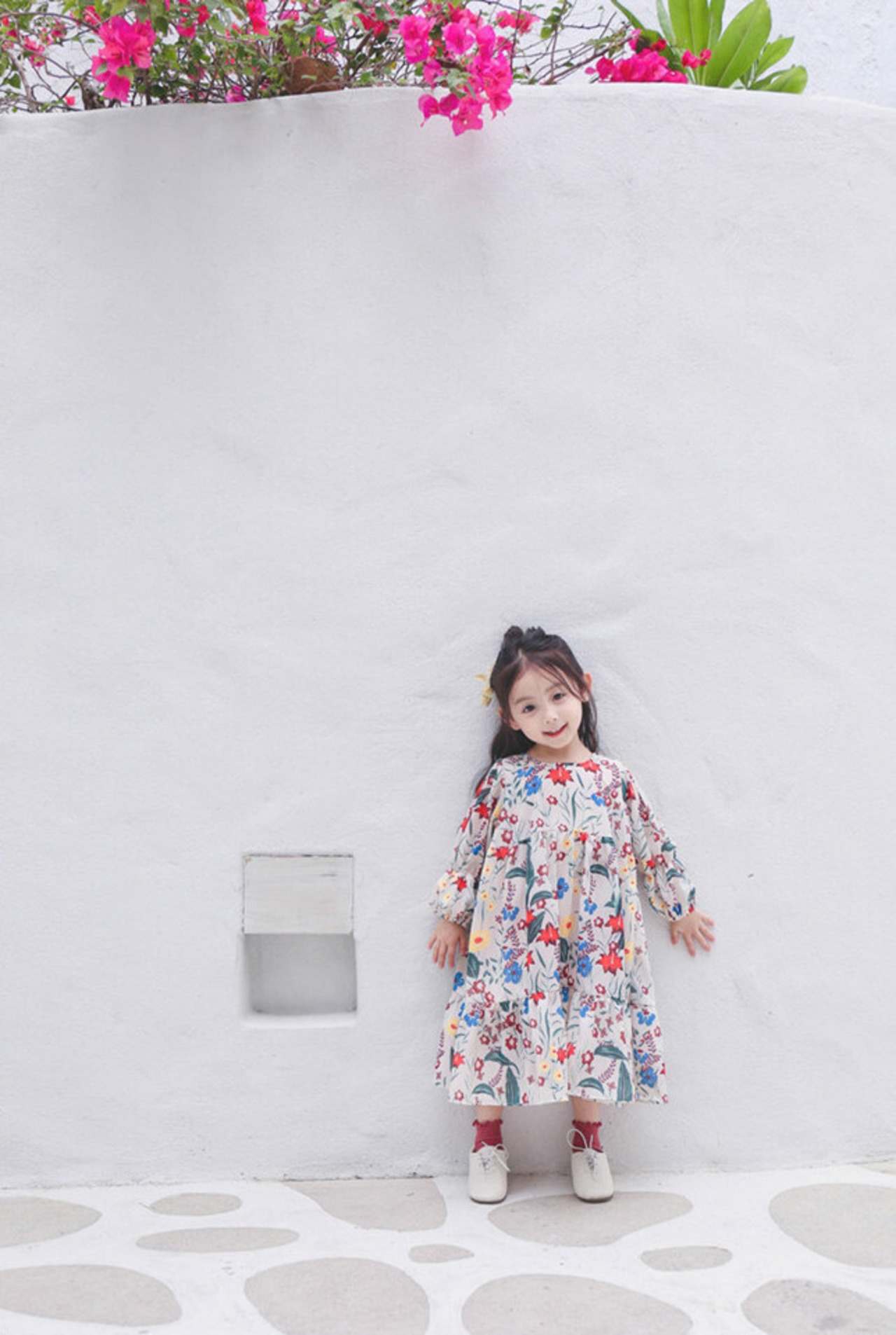 花柄 ワンピース ドレス 花柄ワンピース 春夏 春 夏 新作 春物 フラワープリント 長袖 シフォン コットン 綿 ティアード ロング丈 女の子 キッズ 子供服 ガール 子供 可愛い 韓国 韓国子供服 プレゼント ギフト 贈り物 80 90 100 110 120 130