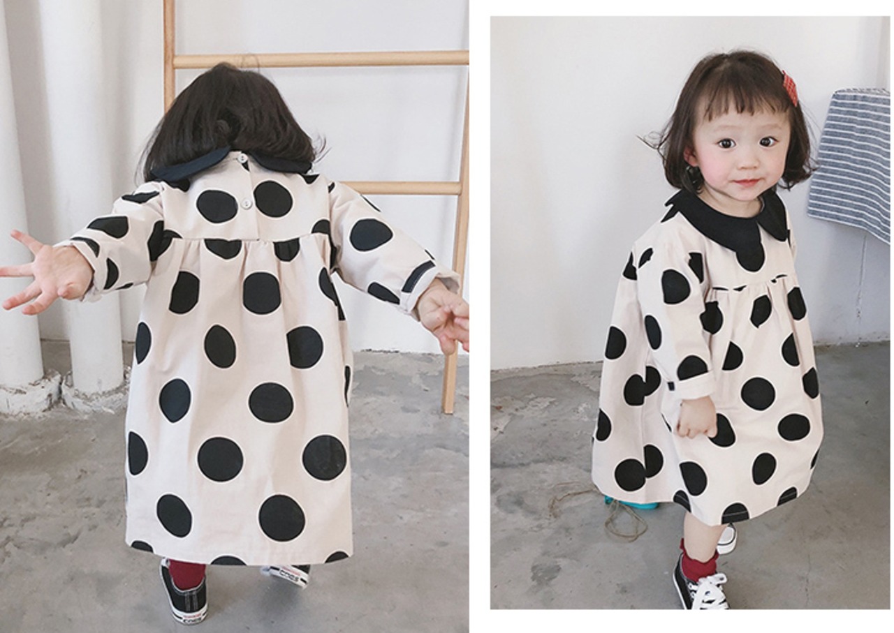 ポルカドット ワンピース ドット 水玉 ドレス 春物 春夏 春 夏 新作 襟付き モノトーン モード Aライン 子供 女の子 キッズ 子供服 可愛い おしゃれ 韓国 韓国子供服 プレゼント ギフト 贈り物 パーティー イベント ハロウィン 80 90 100 110 120 130