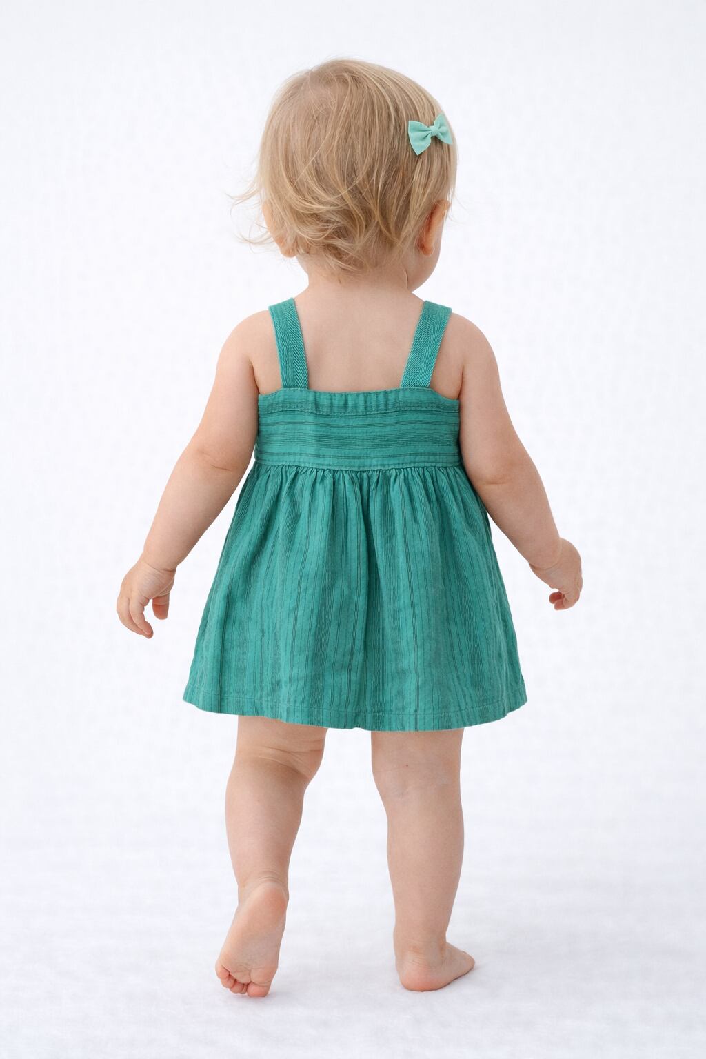 ギャザーをたっぷりと寄せたAラインシルエットは、子どもらしさと品の良さを両立します。